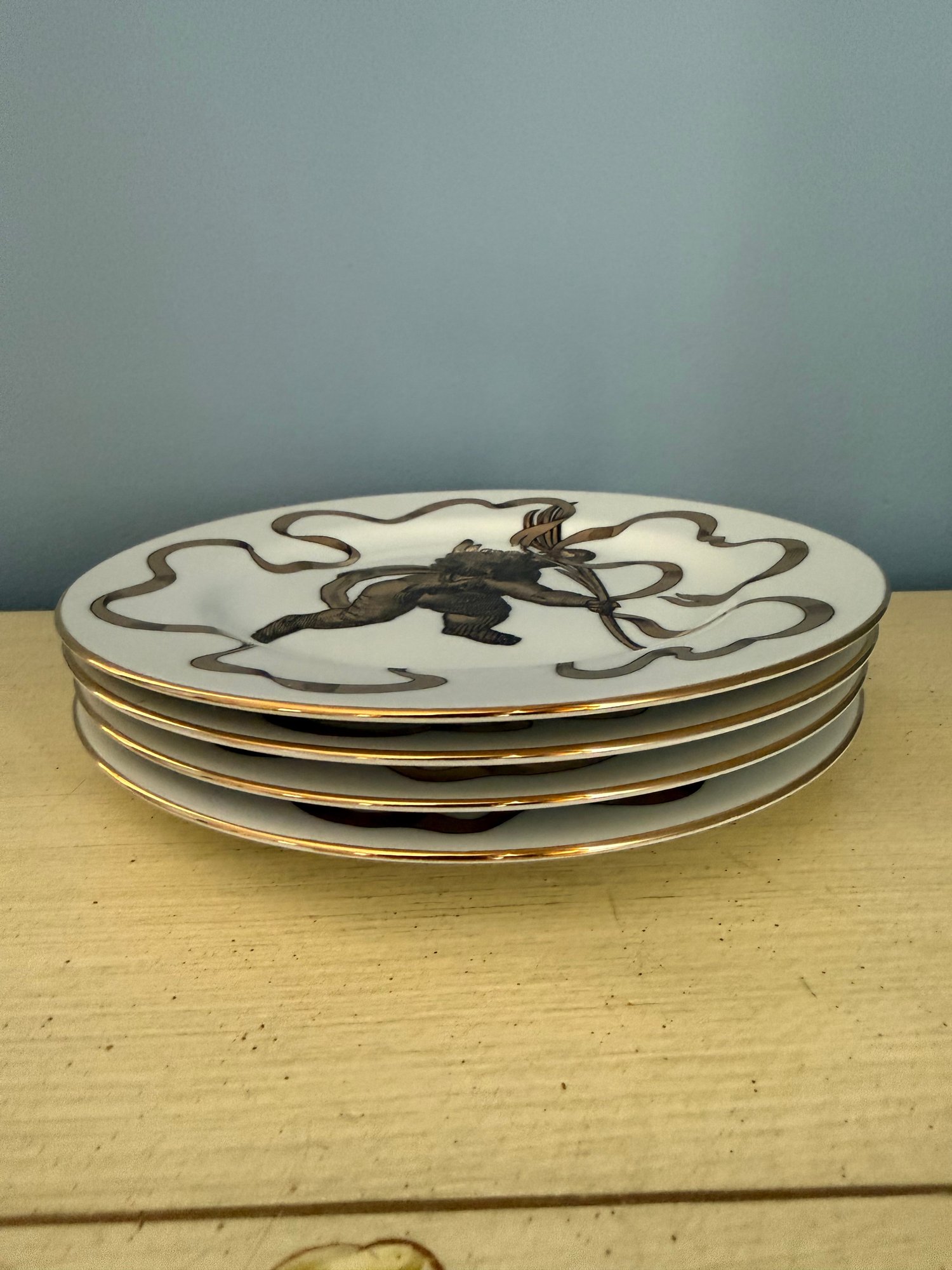 Neiman Marcus Decorative Porcelain Plates With Cherub And Ribbon Motif