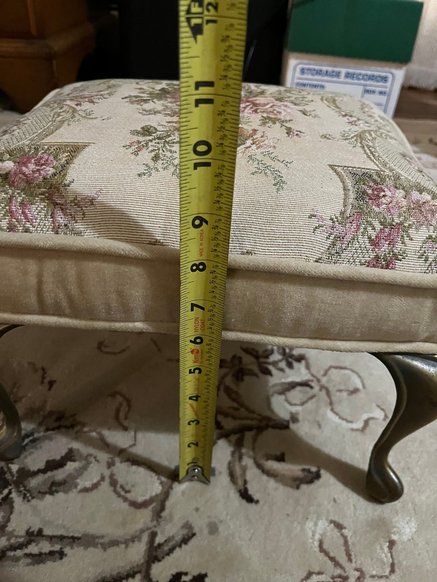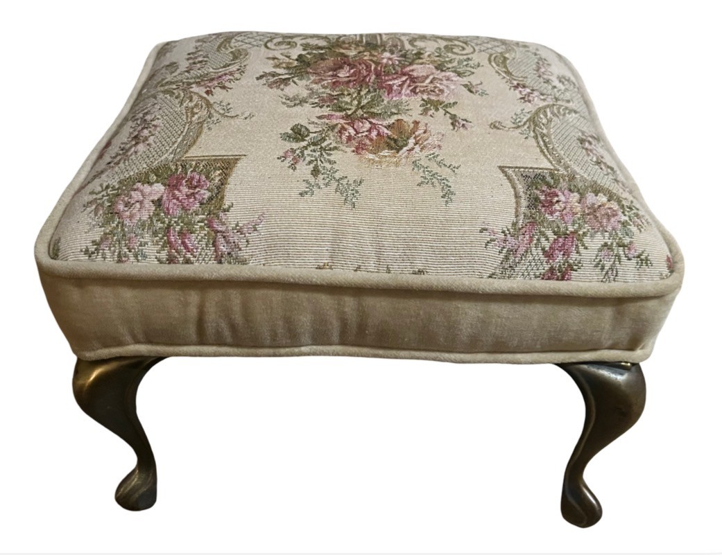 Elegant Tapestry Footstool With Floral Motifs And Cabriole Legs