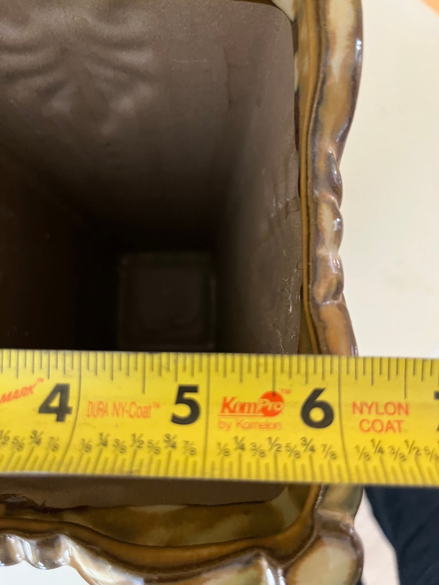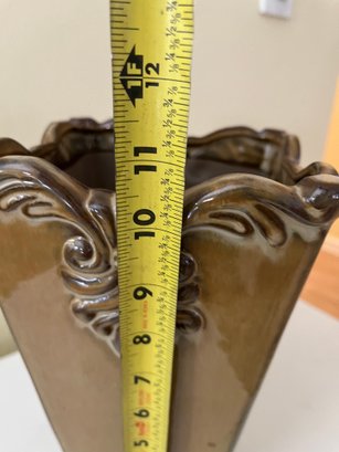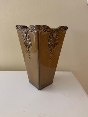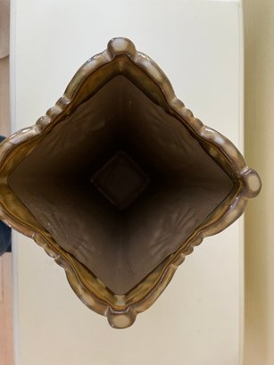 Embossed Ceramic Square Vase With A Glossy Brown Glaze