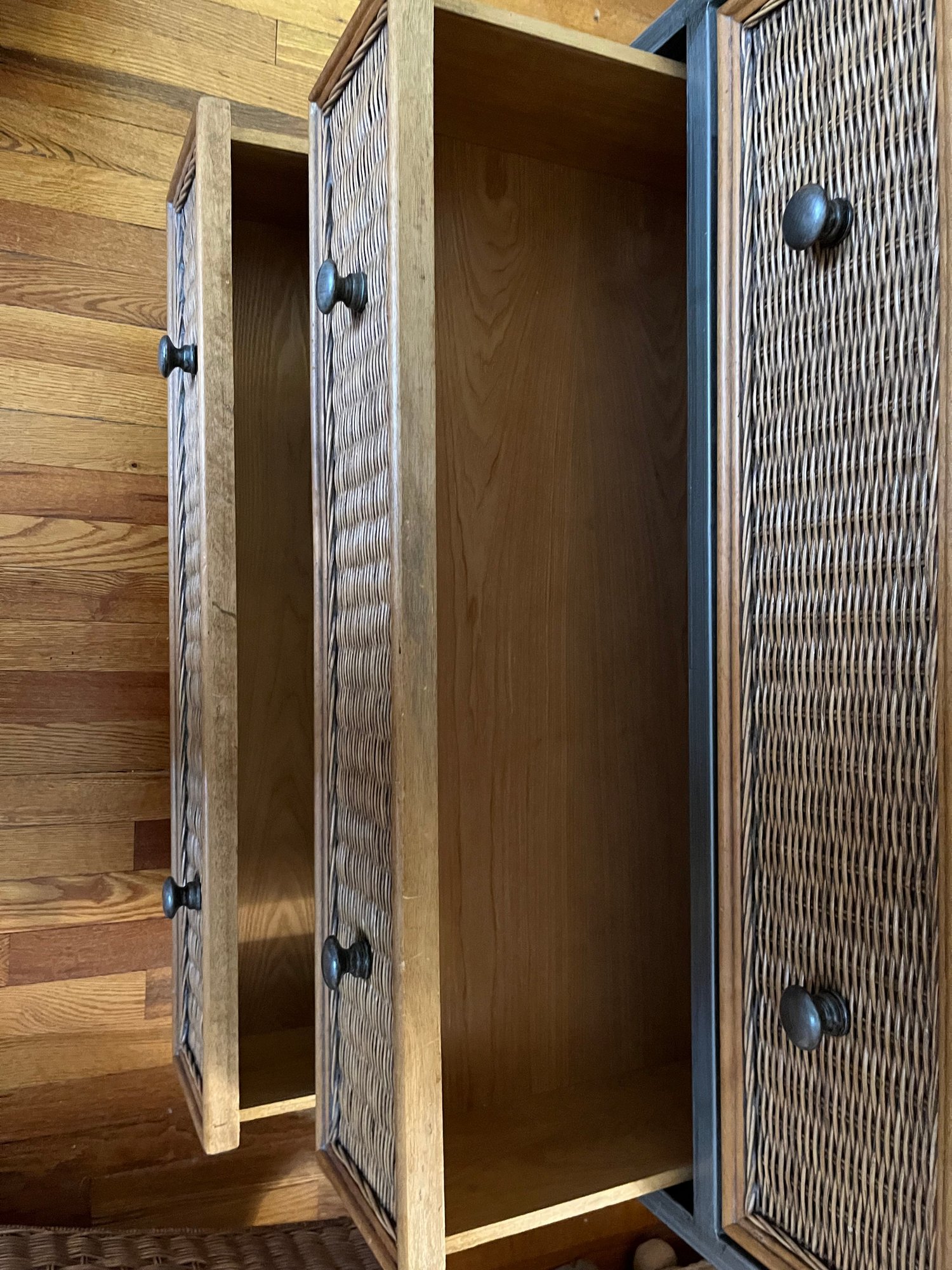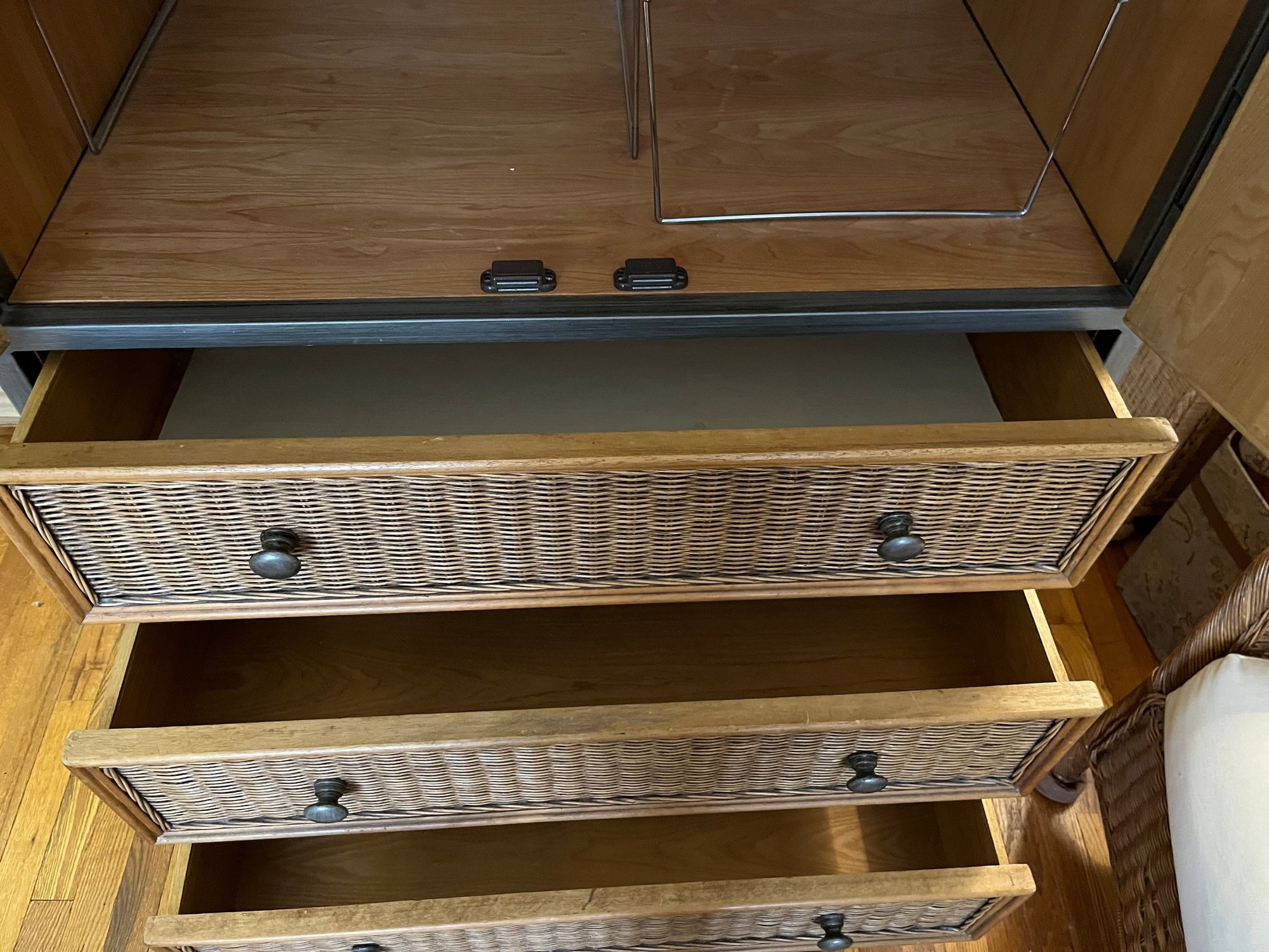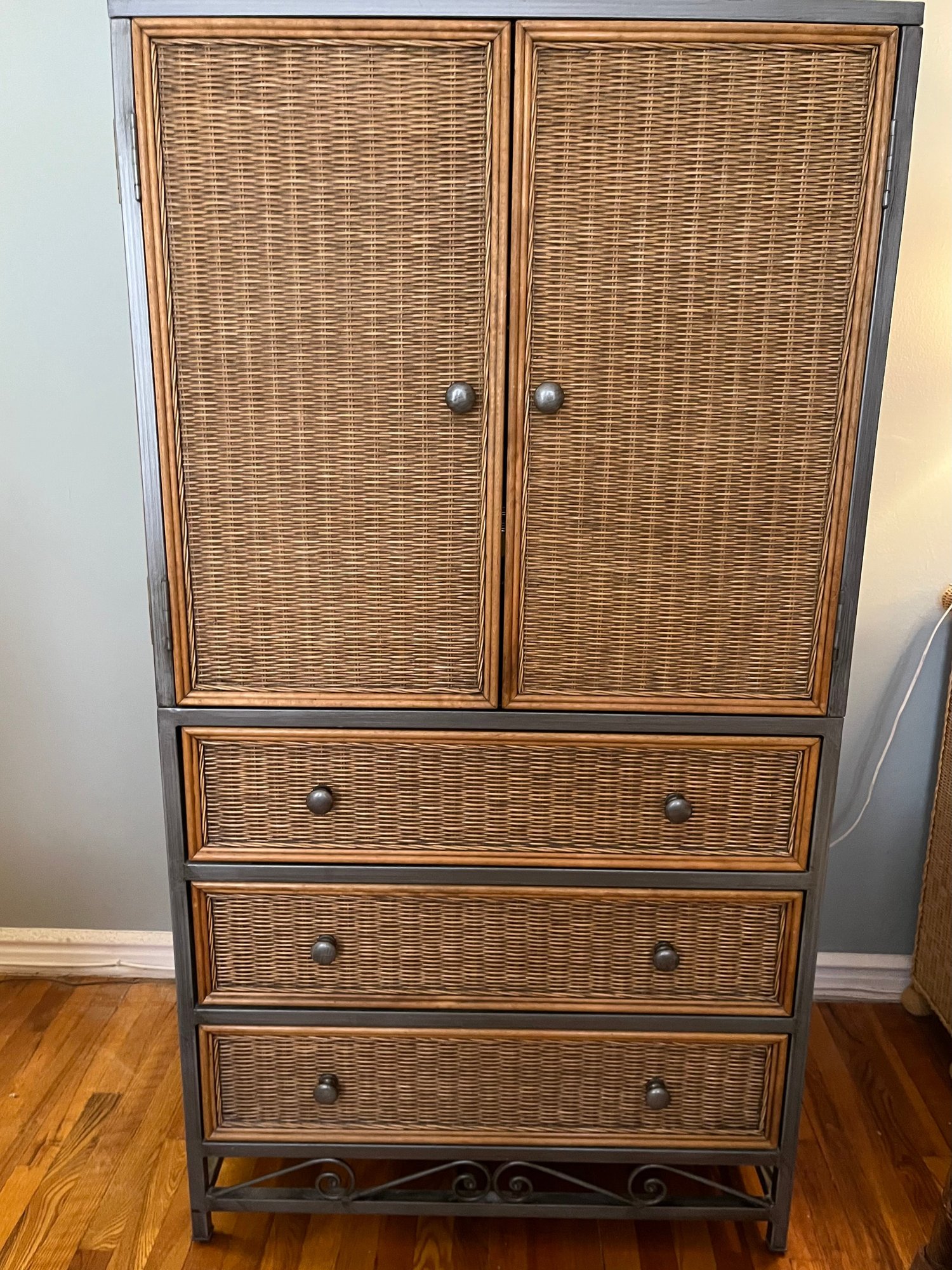 Pier 1 Imports Wicker And Steel Armoire With Three Drawers