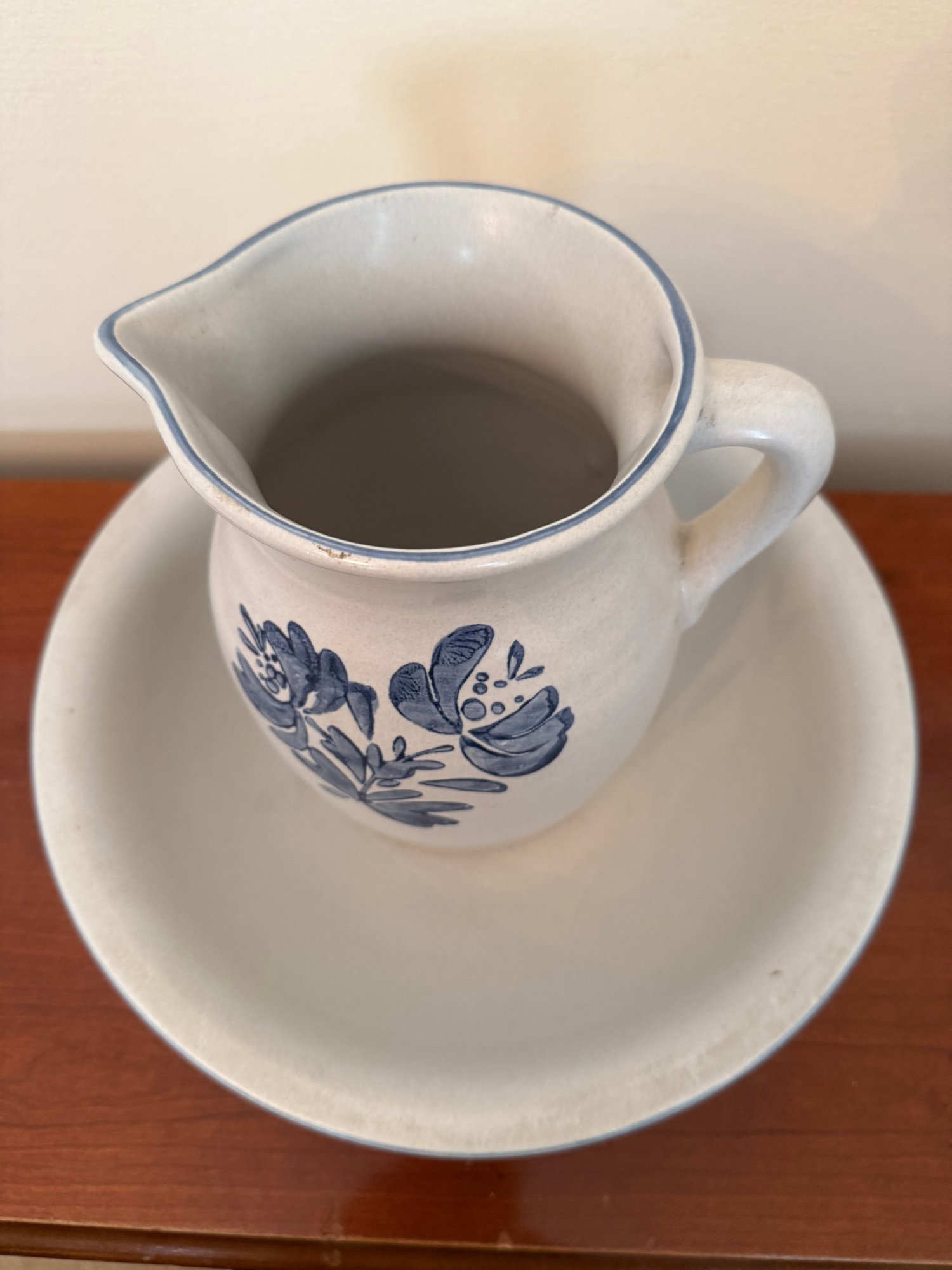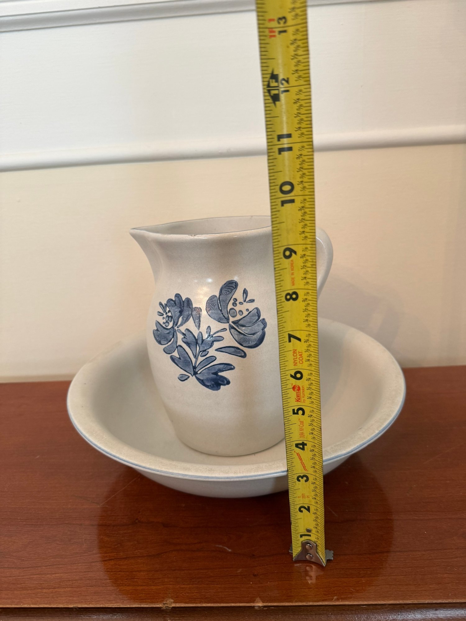 Pfaltzgraff Yorktowne Blue Floral Stoneware Pitcher And Basin Set