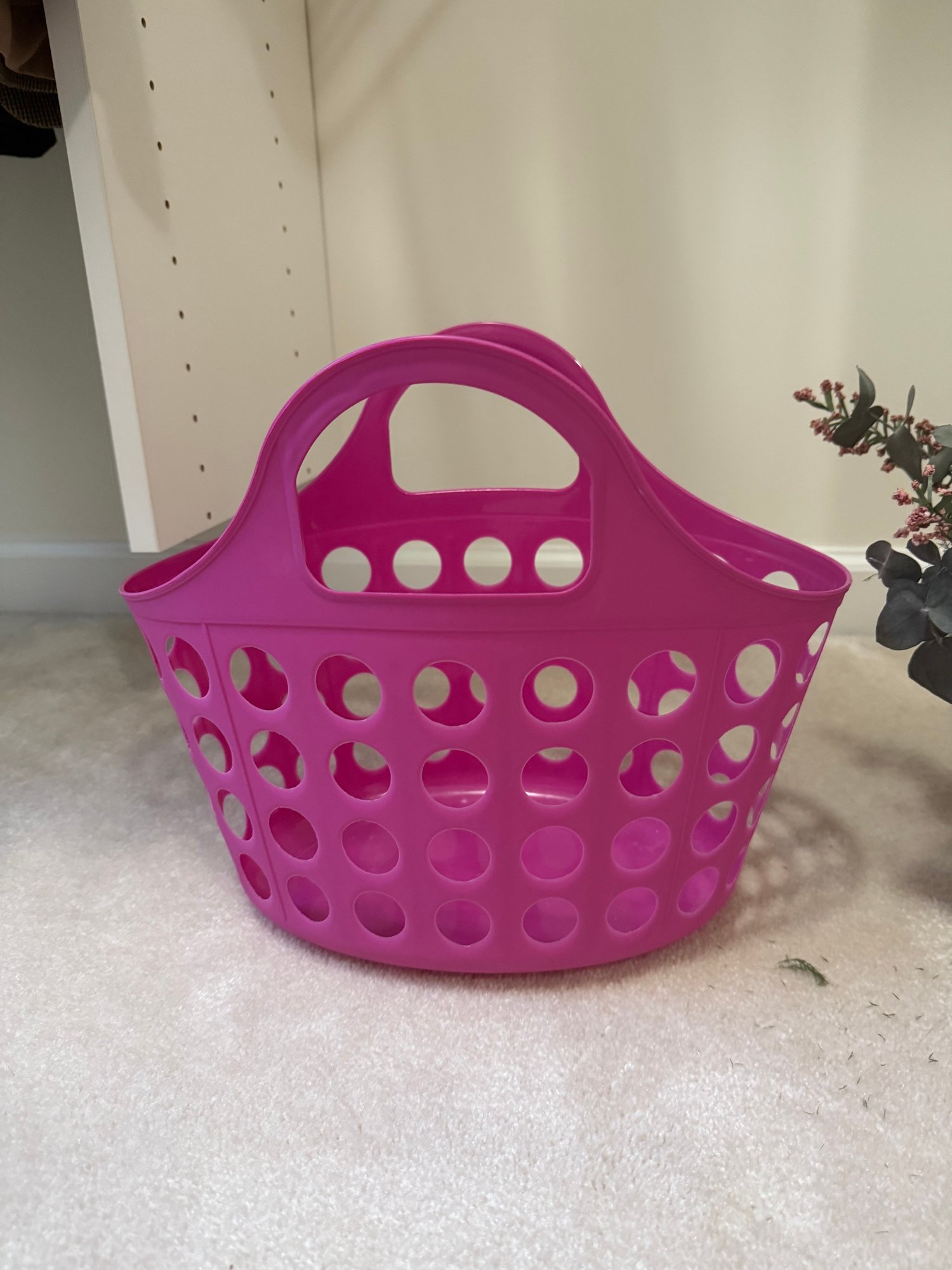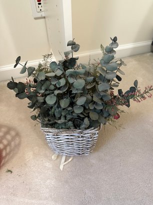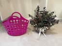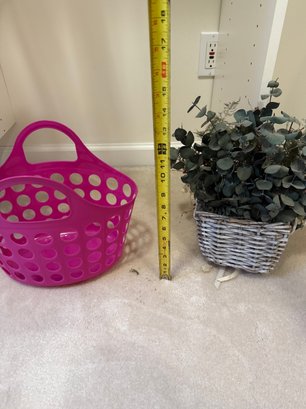 Faux Flower Wall Decor And Plastic Basket