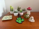 Faux Succulents, Mushrooms And Frogs