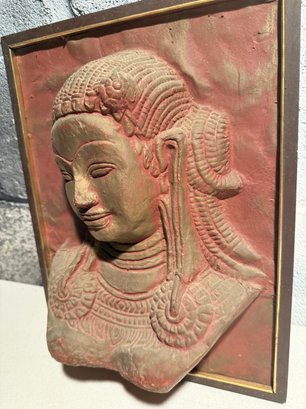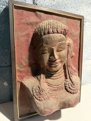Framed Bas-relief Carving Of A Khmer-inspired Female Bust