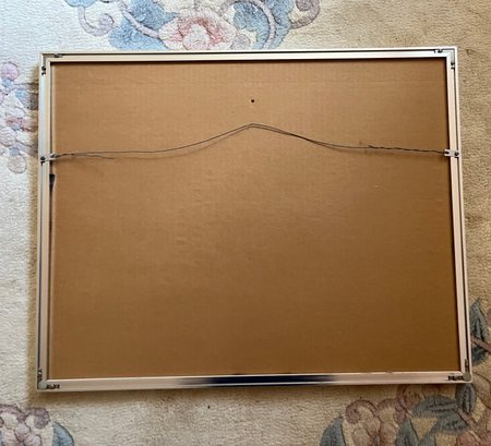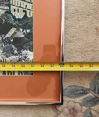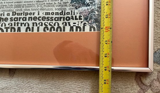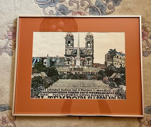 Framed Collage Artwork Depicting An Italian Cityscape With Text Fragments.