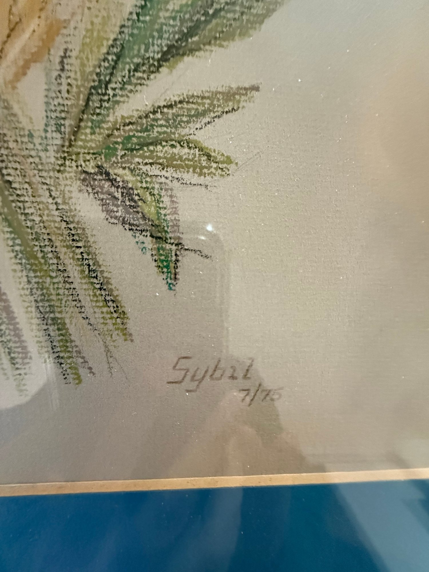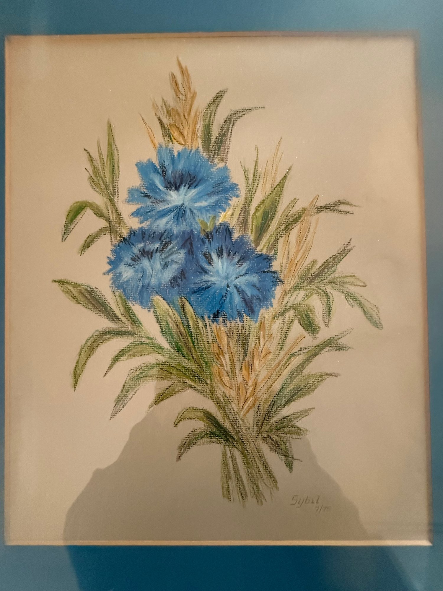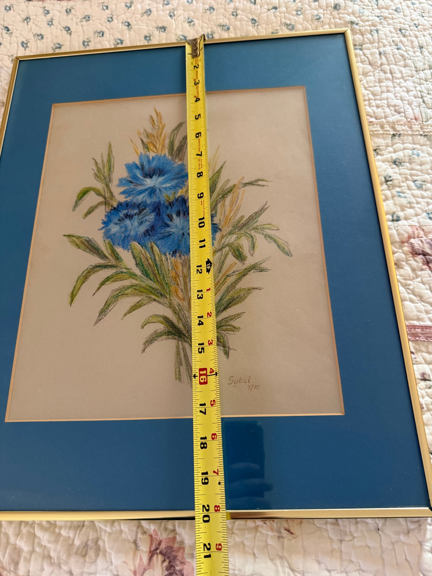 Framed Pastel Drawing Of Cornflowers And Wheat By Sybil, Dated 1975.