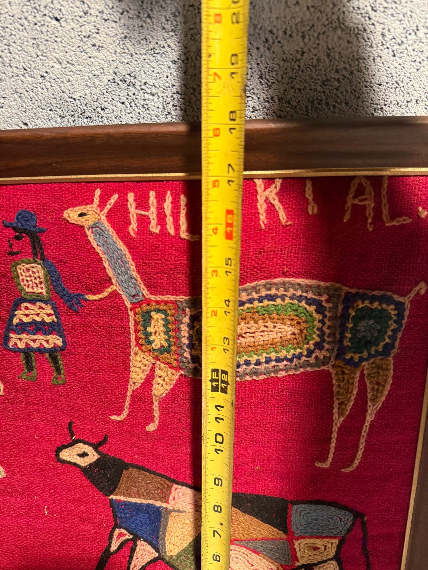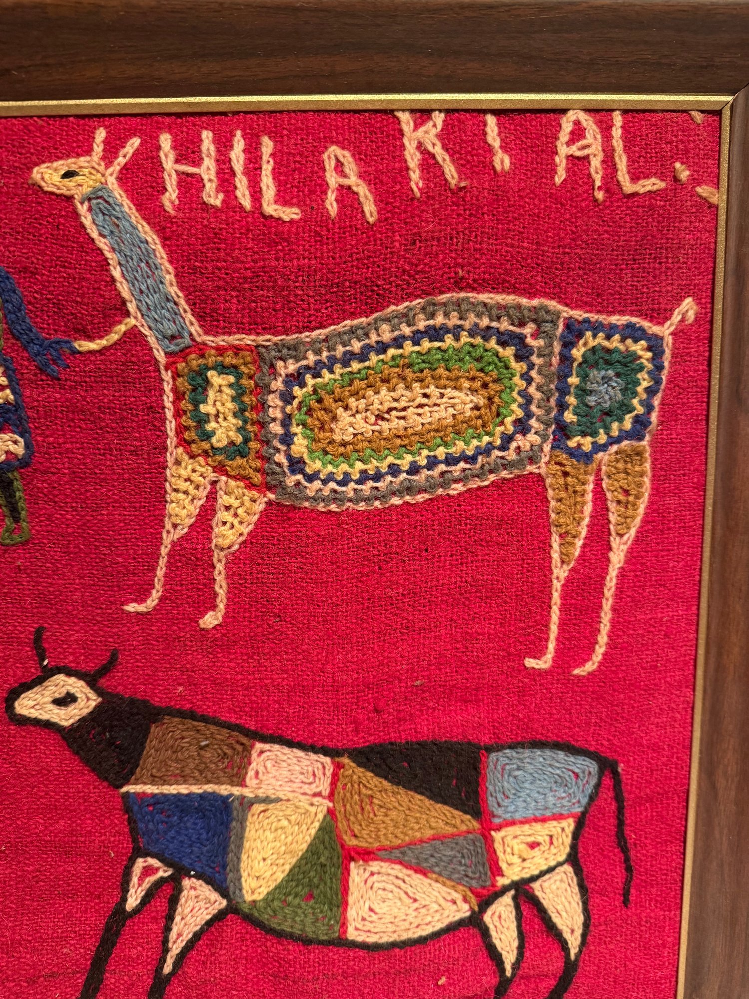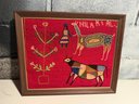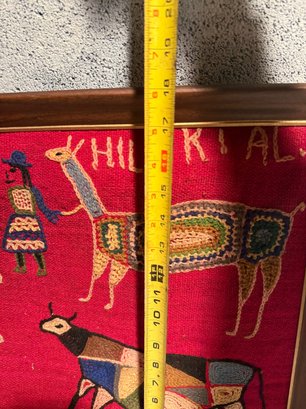 Framed Peruvian Embroidered Textile Art Depicting Folk Figures And Animals