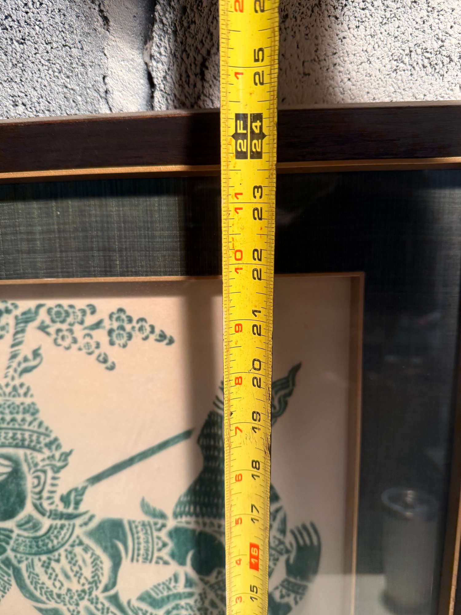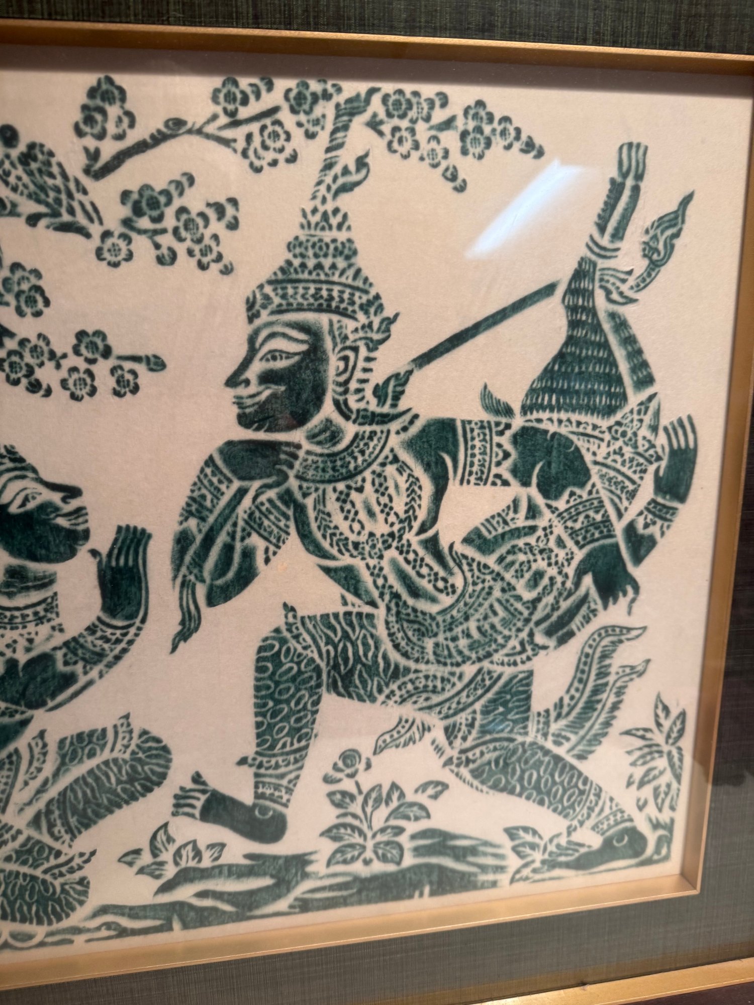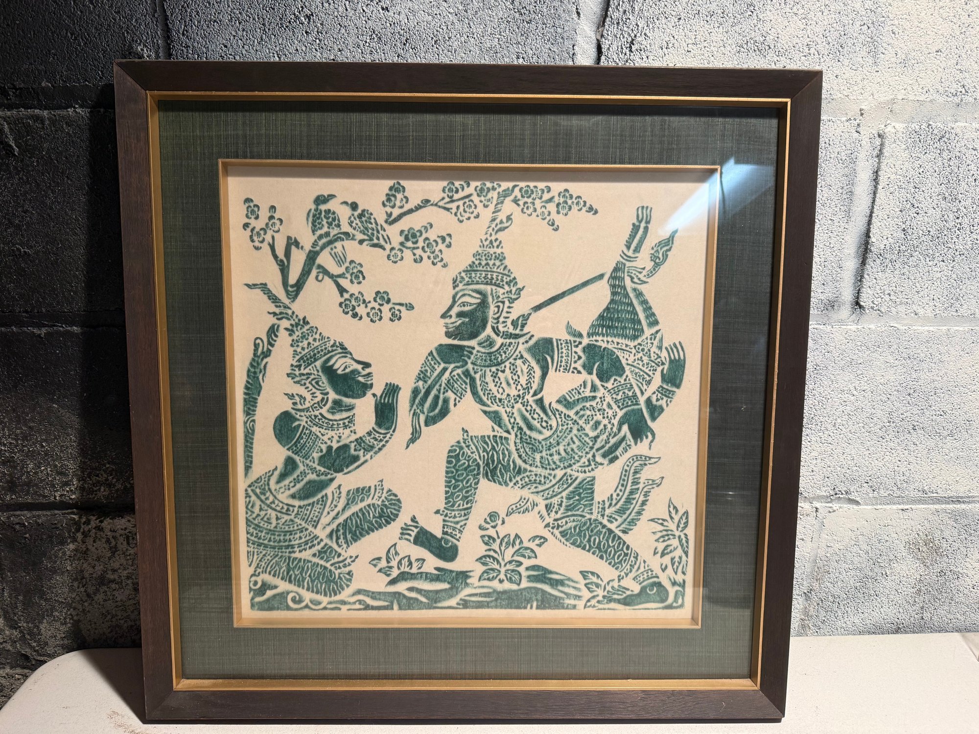 Framed Thai Charcoal Rubbing Depicting Mythological Figures And Creatures