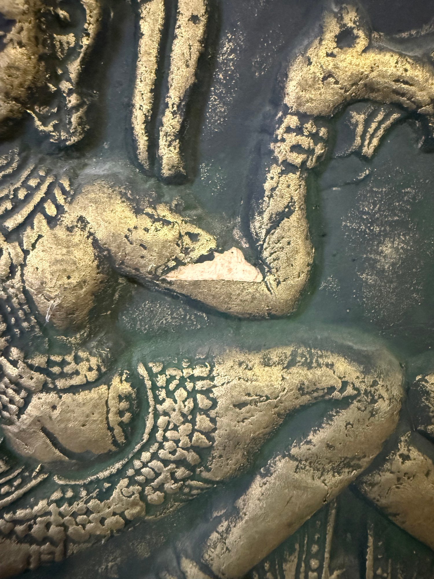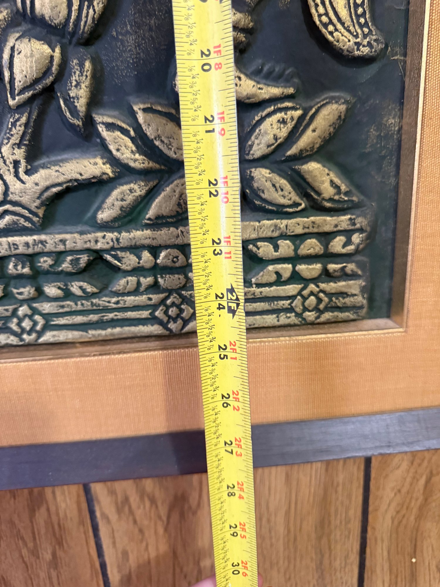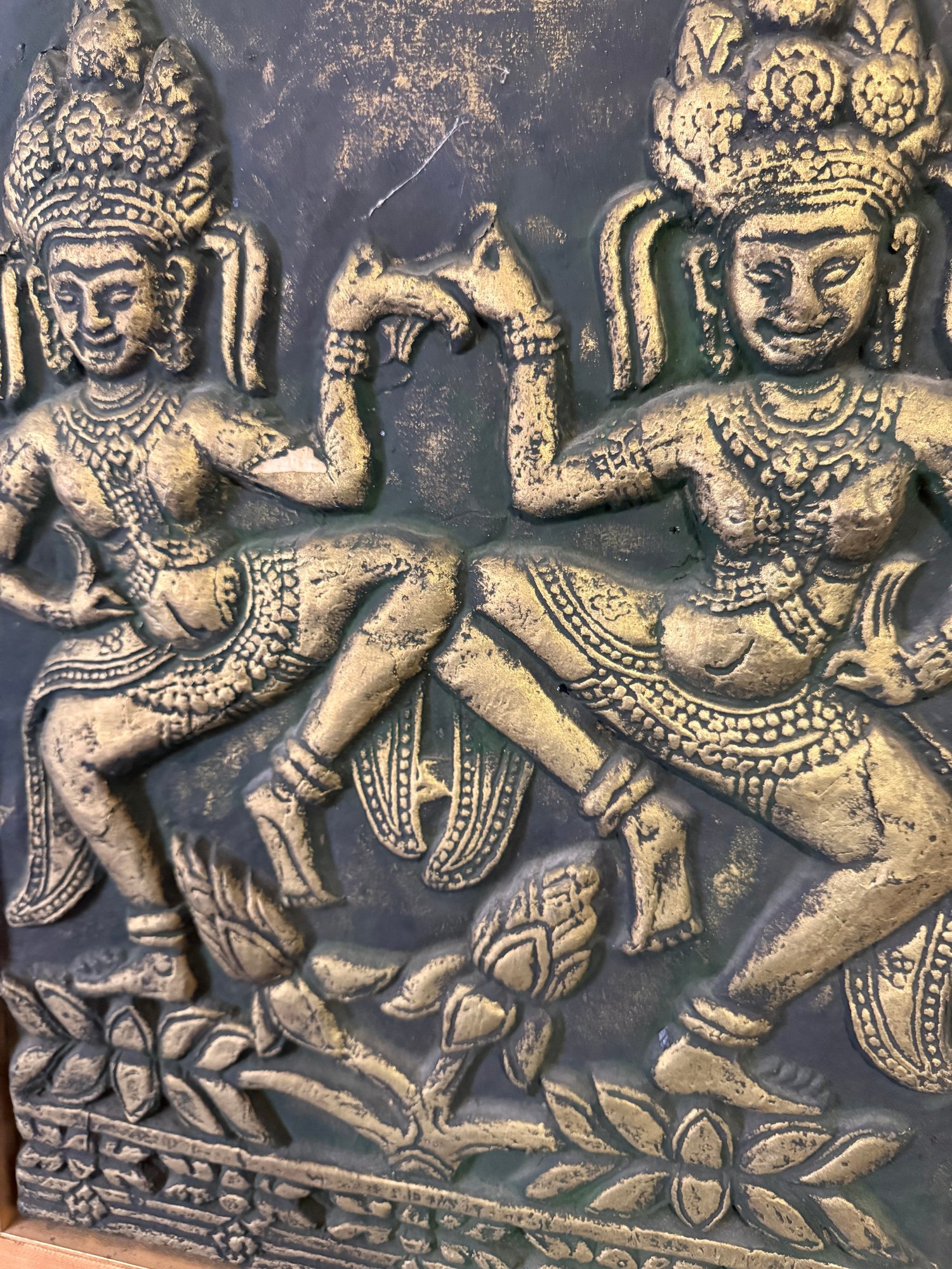 Framed Thai Embossed Rubbing Of Two Dancing Figures, Possibly Apsaras