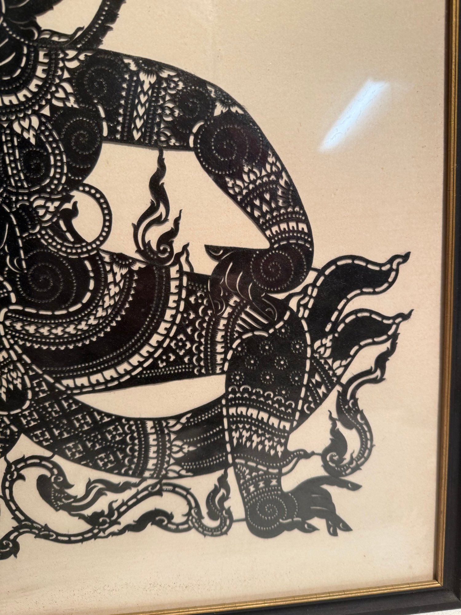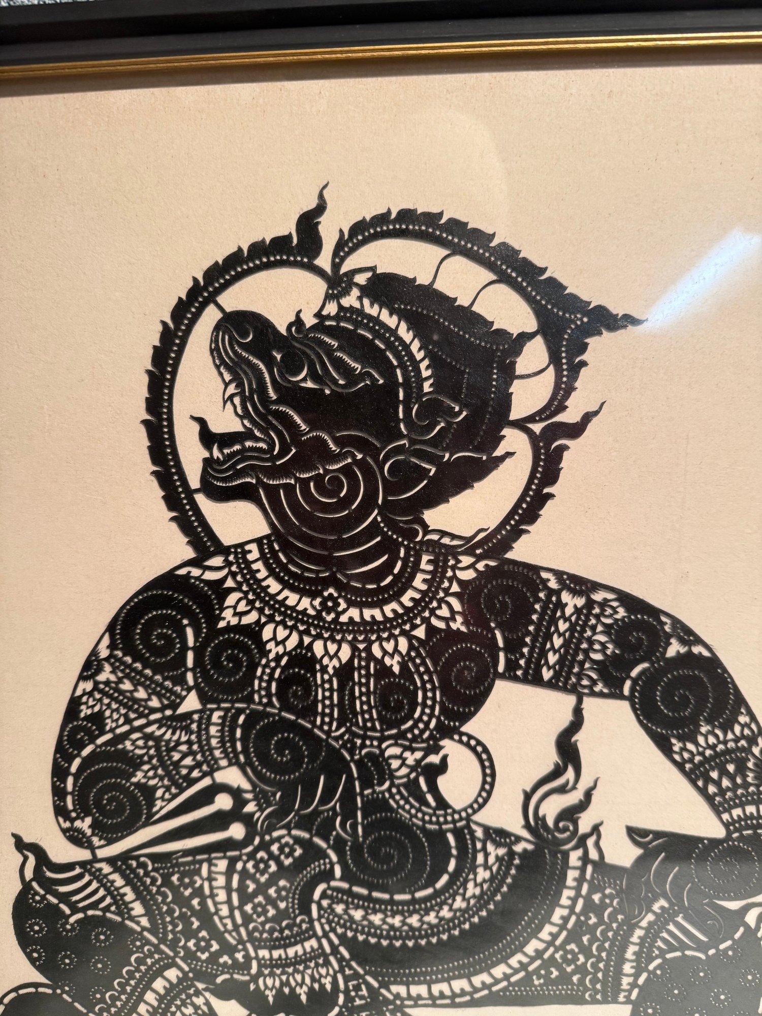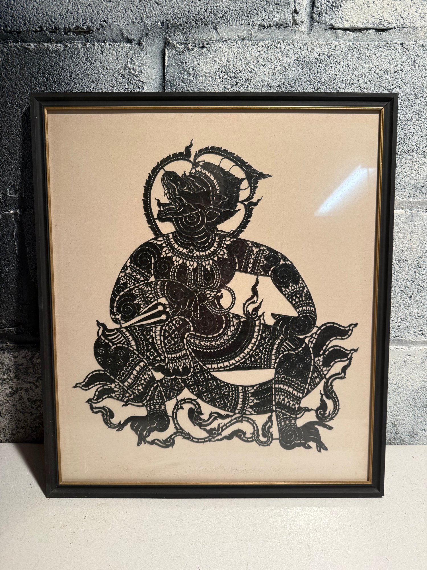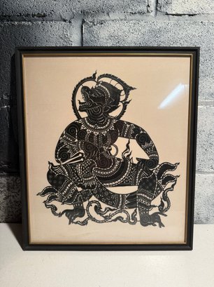 Framed Thai Shadow Puppet Cutout Of A Mythical Monkey Character
