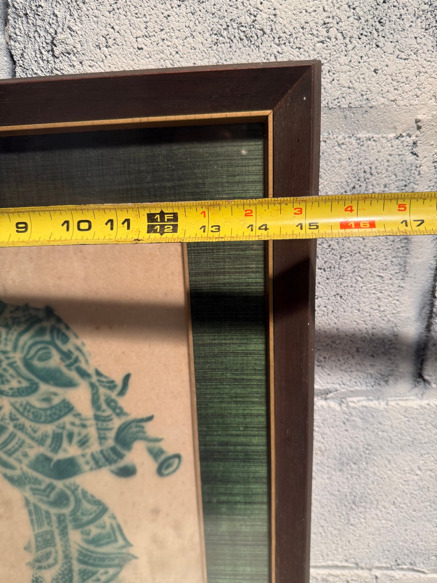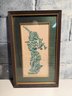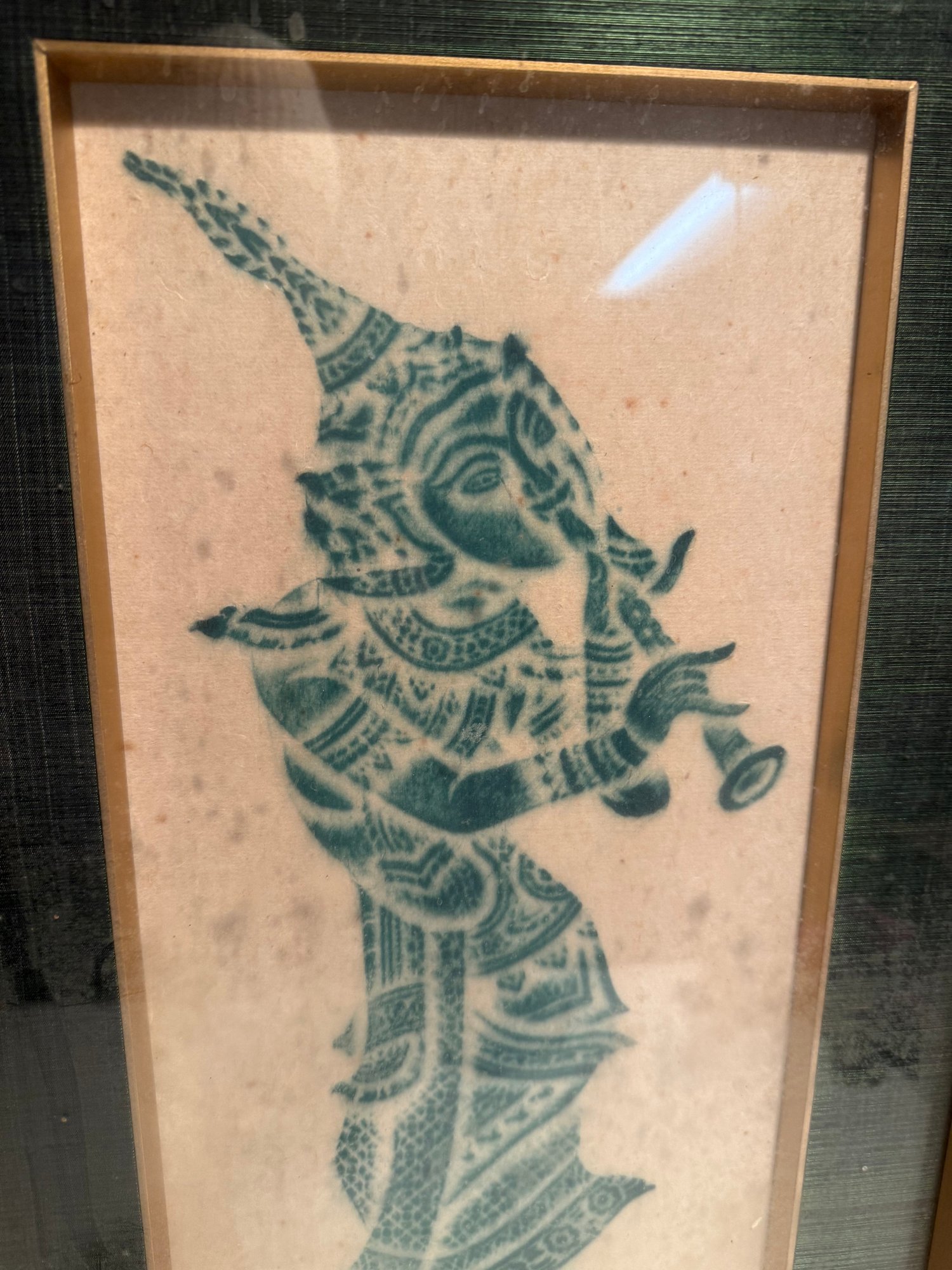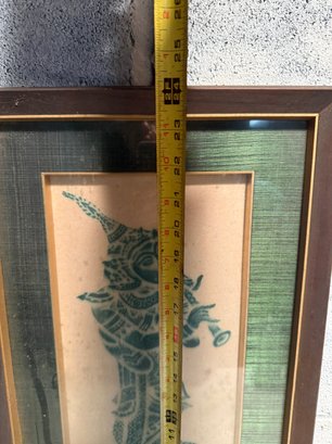 Framed Thai Temple Rubbing Of A Musician Playing A Flute Green