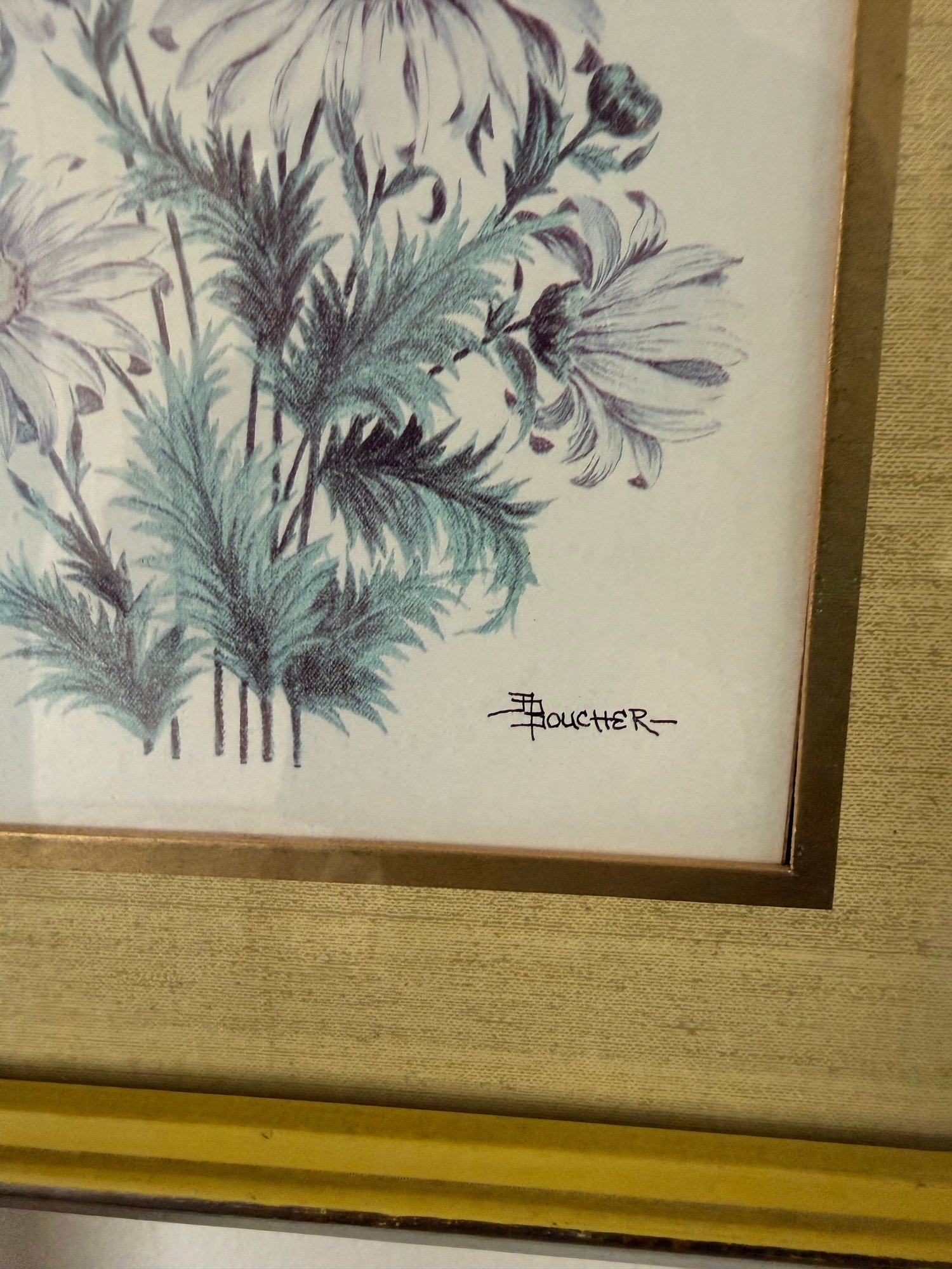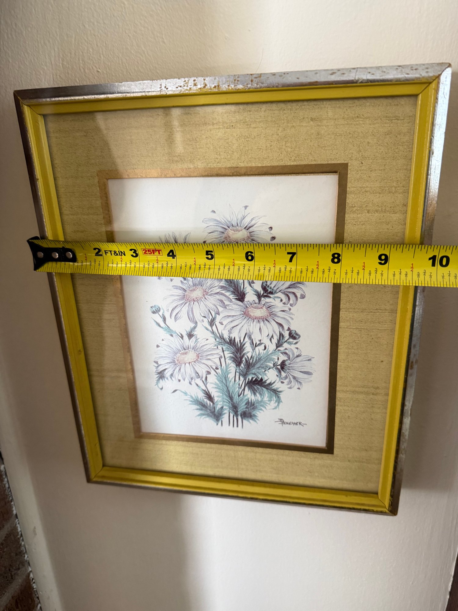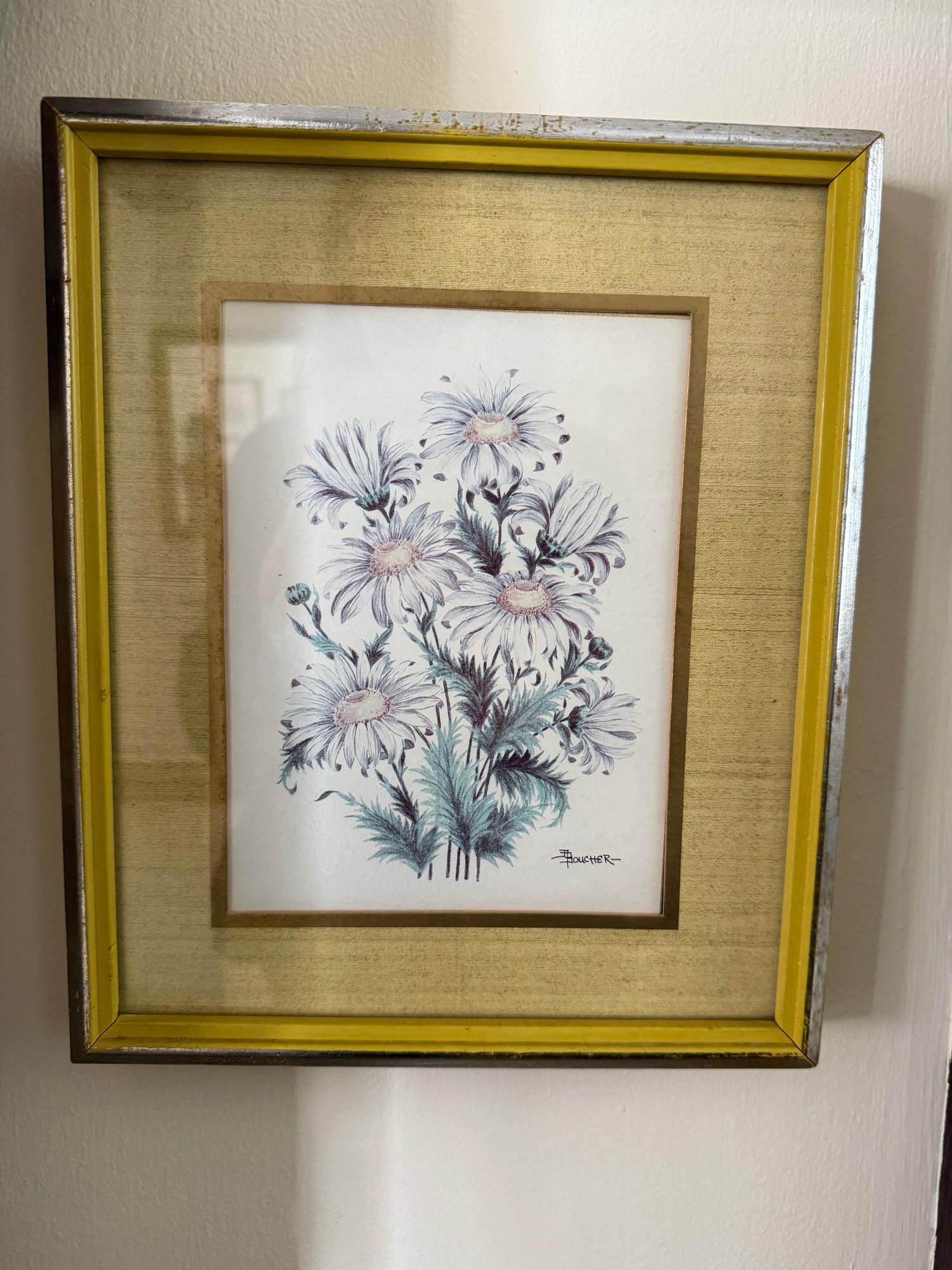 Framed Watercolor Painting Of Daisies Signed "Boucher"