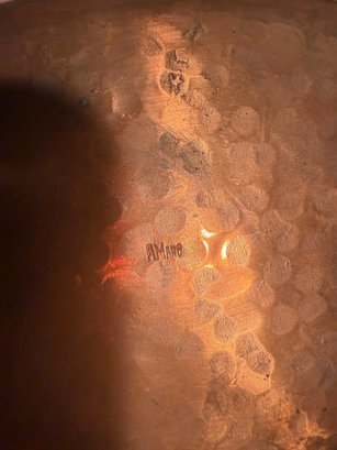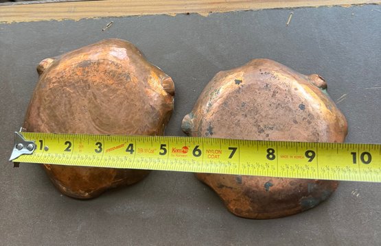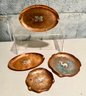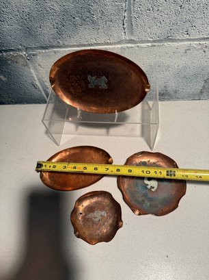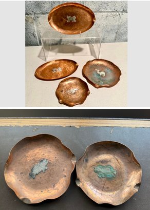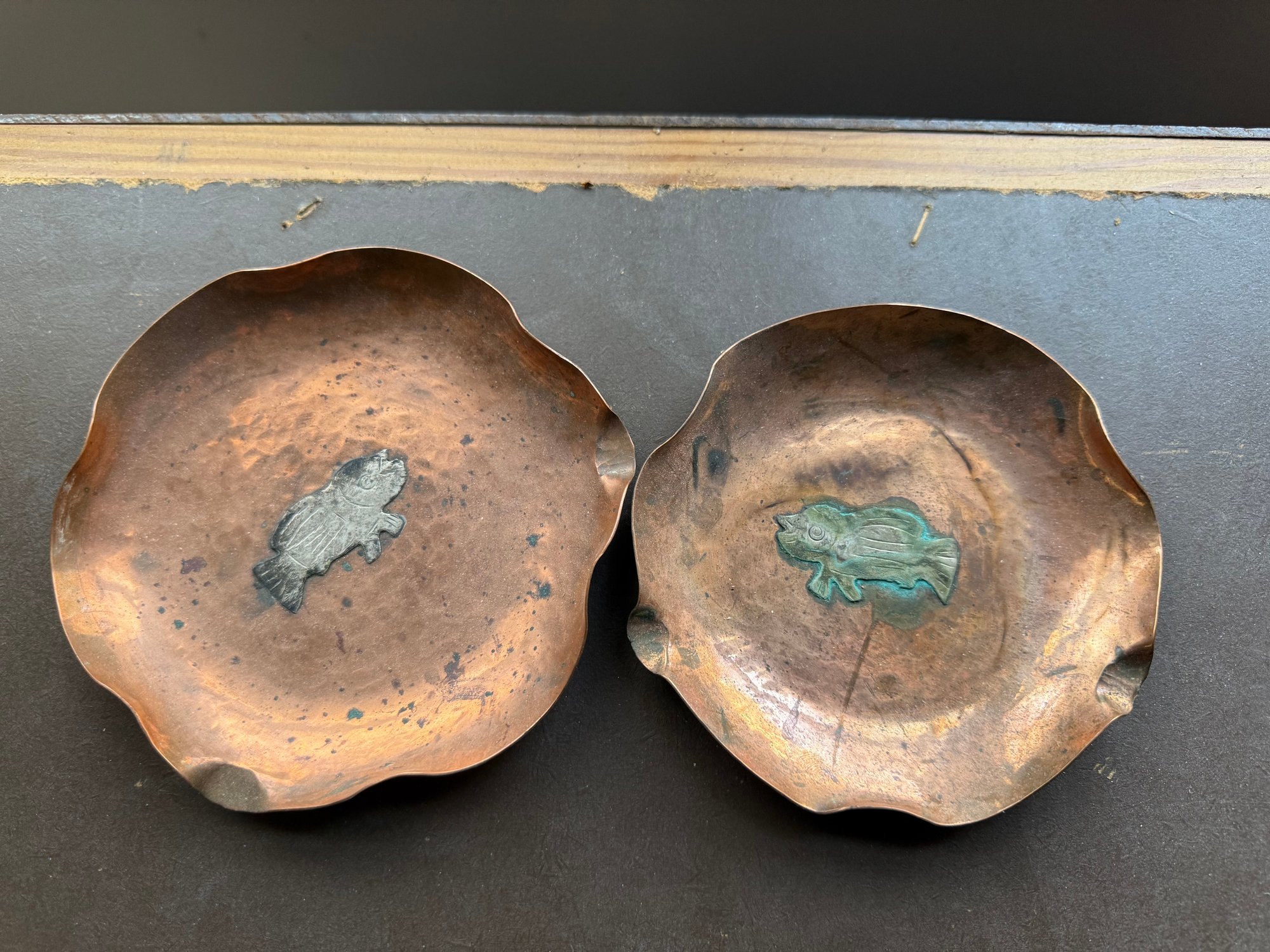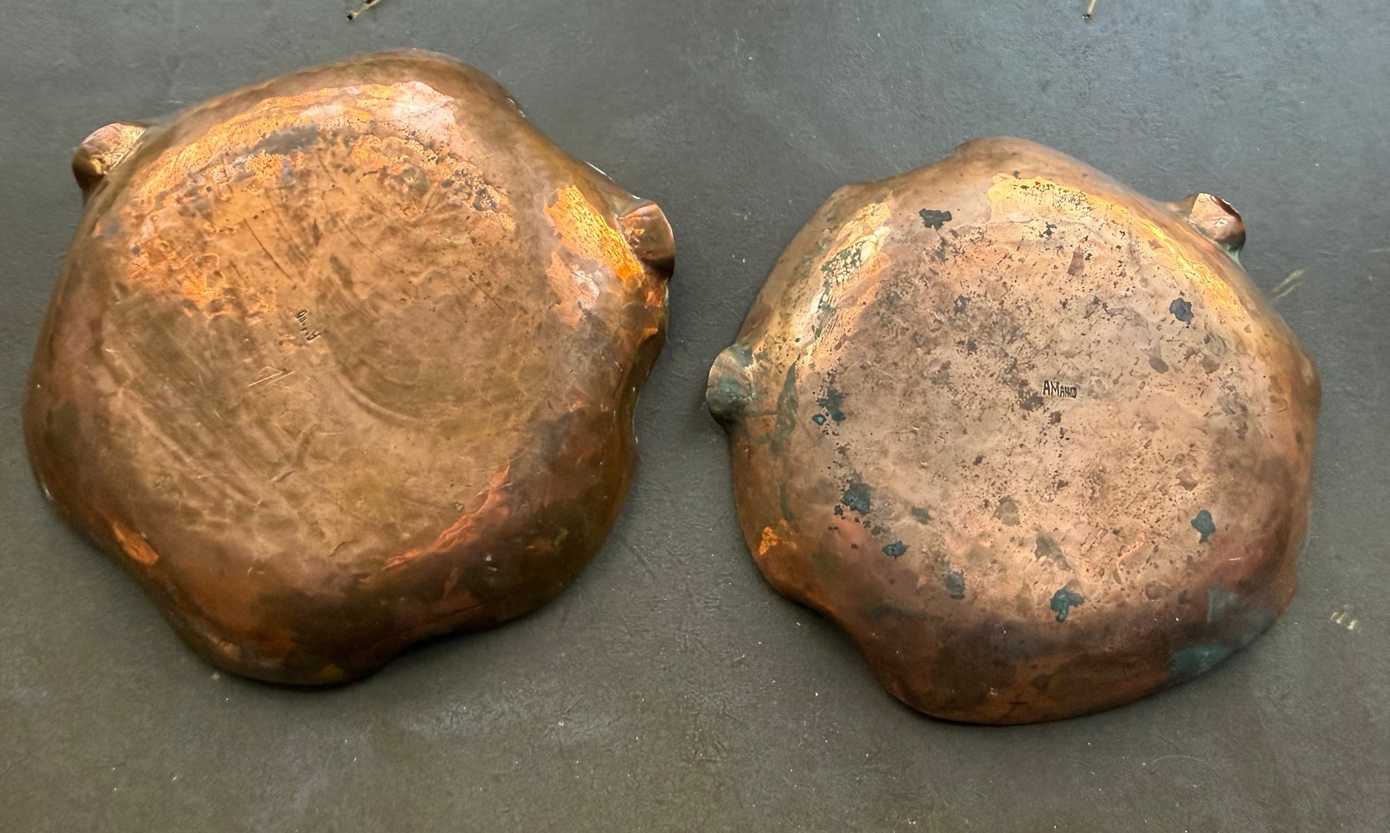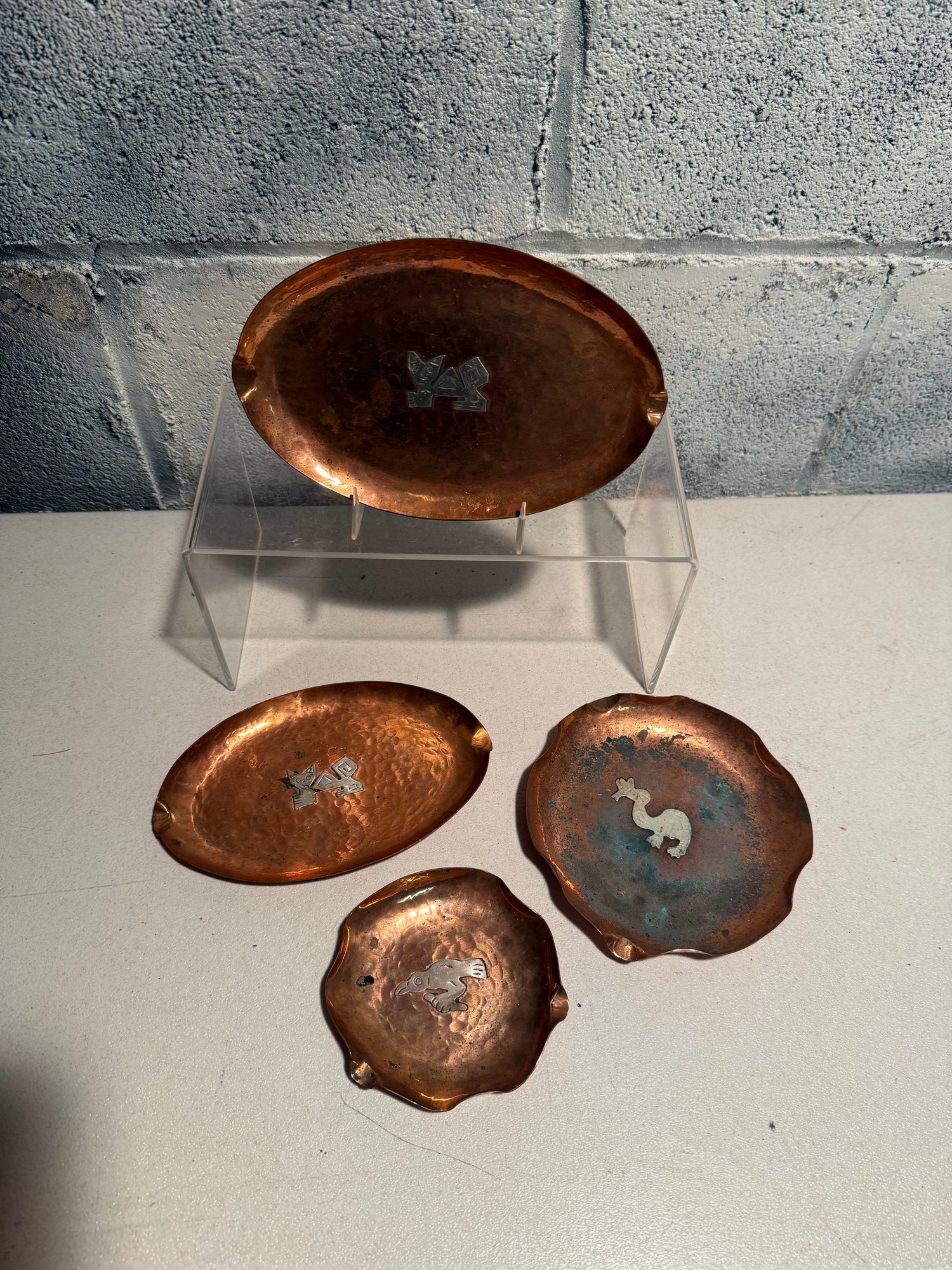 Hammered Copper Dishes With Inlaid Stylized Animal Designs