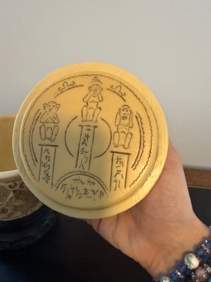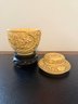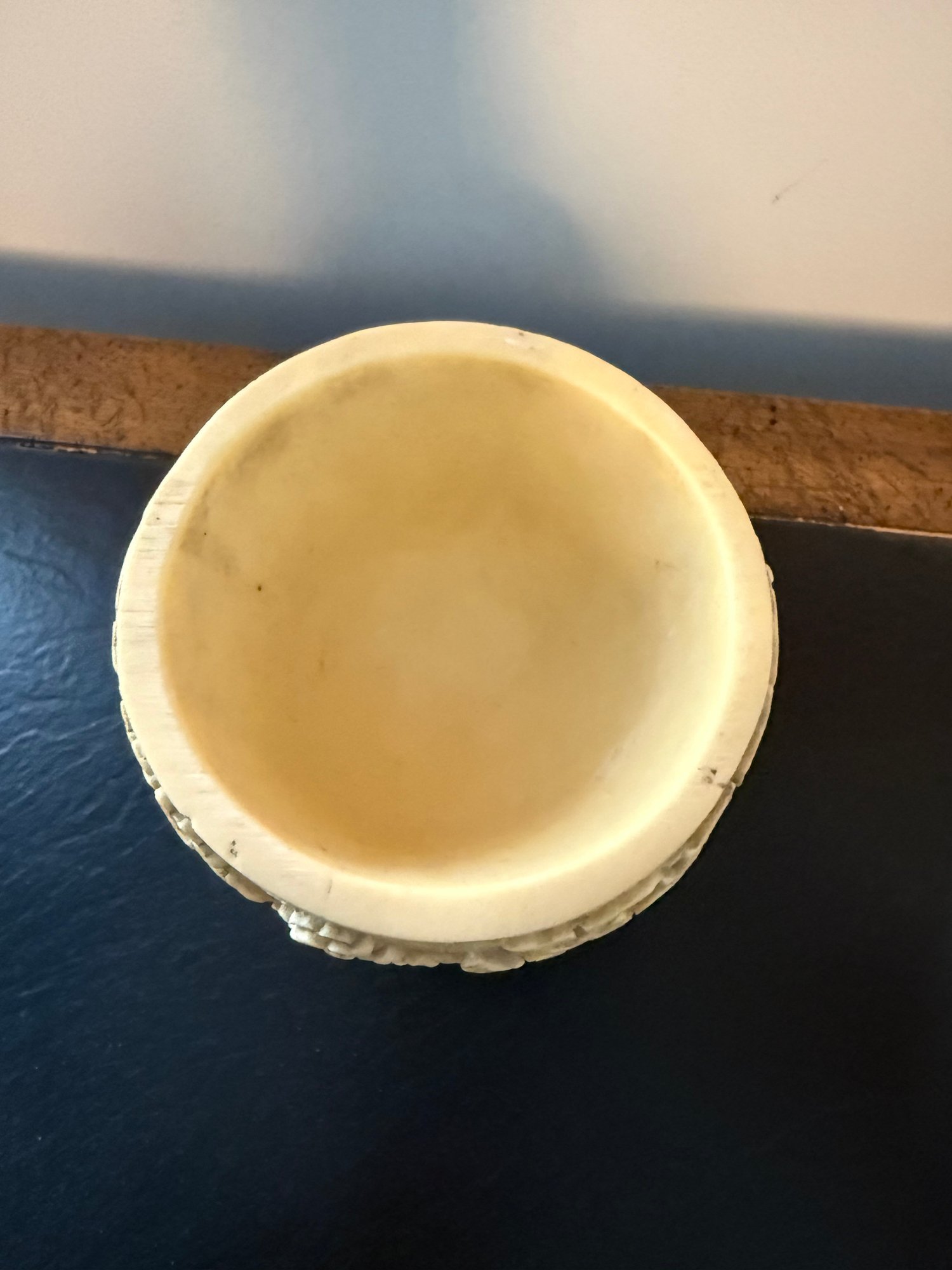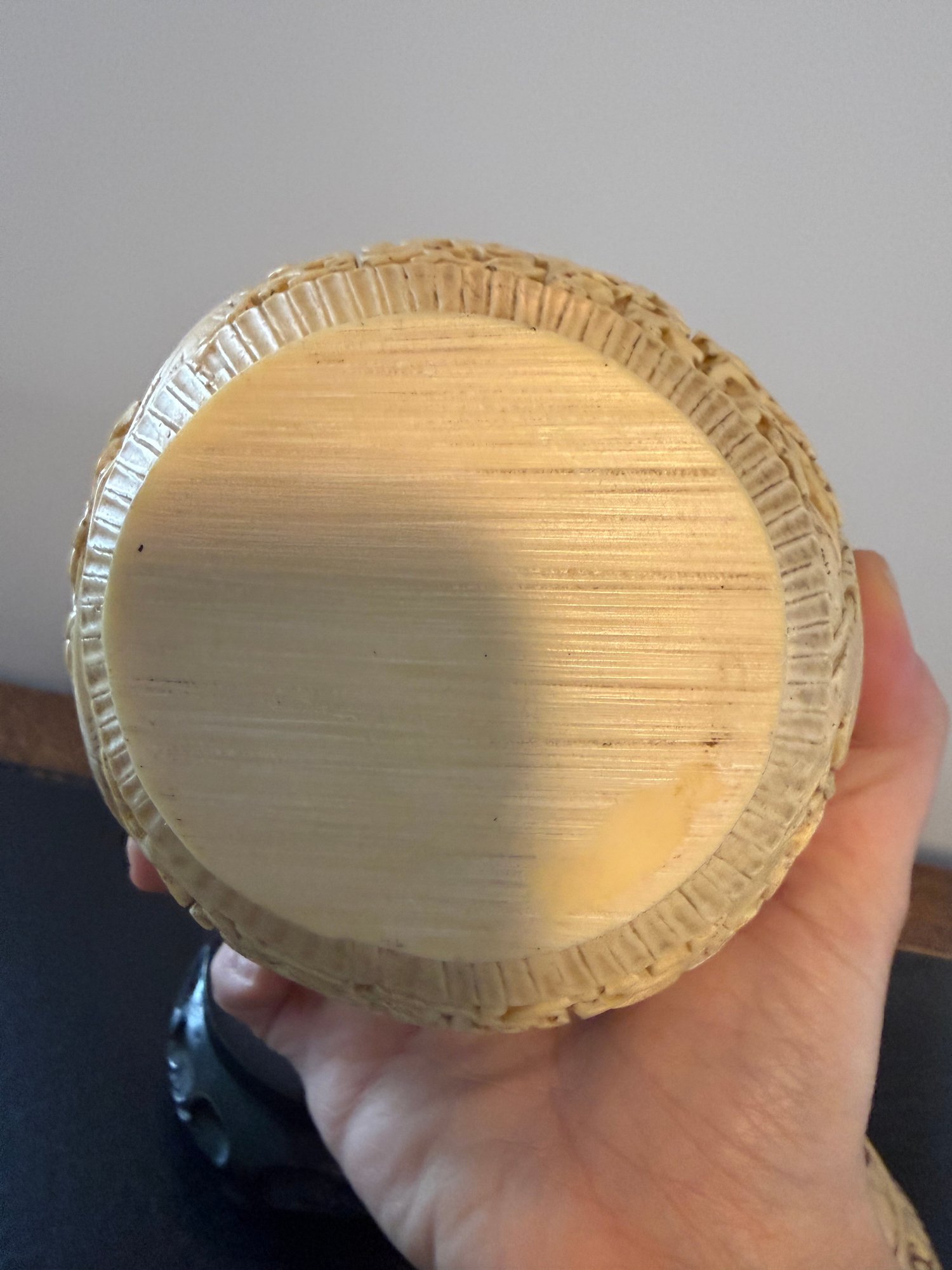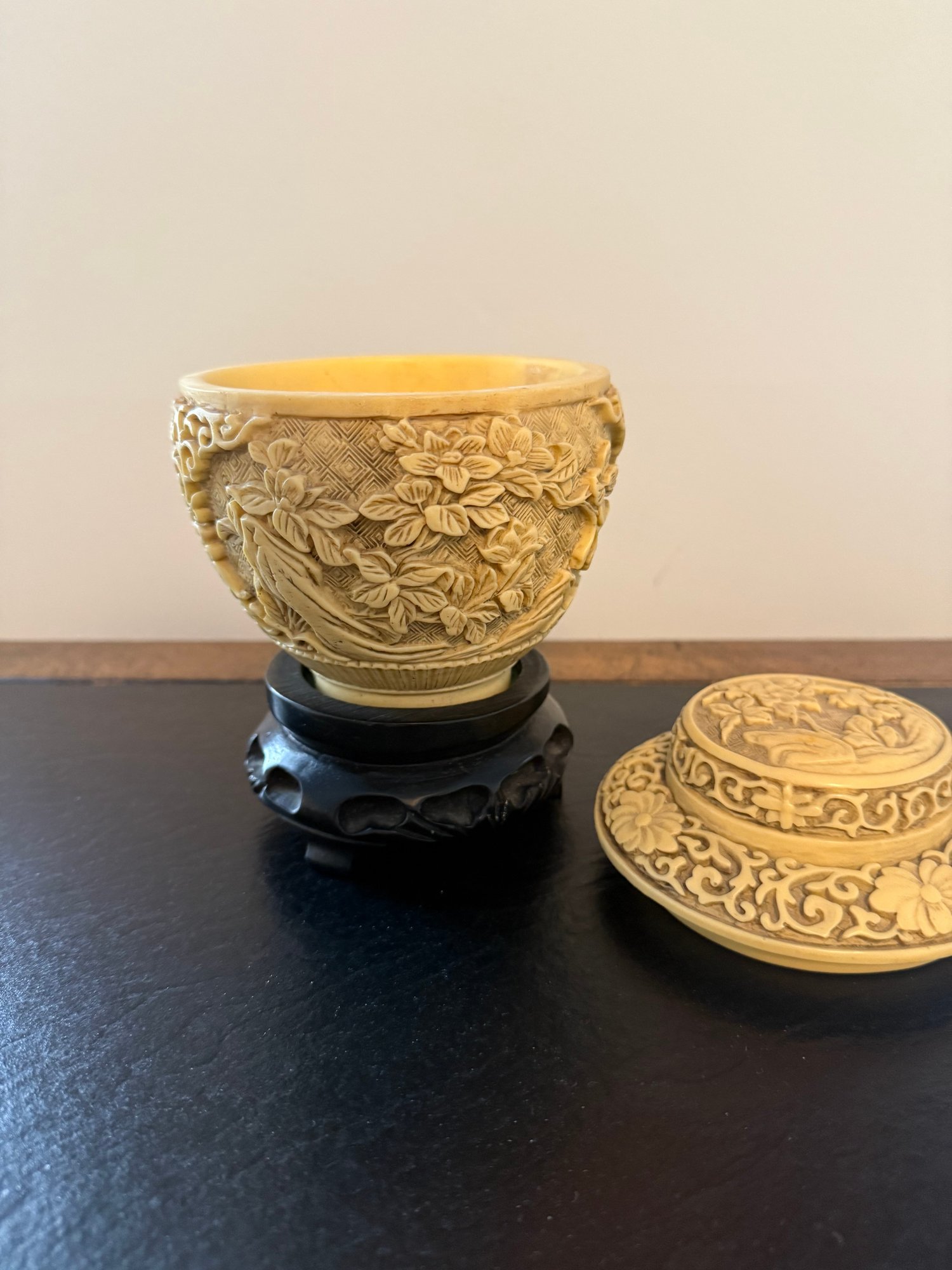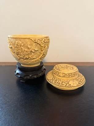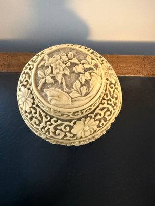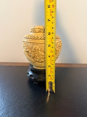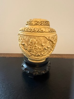 Hand-carved Ivory-colored Lidded Vase With Floral Motifs.