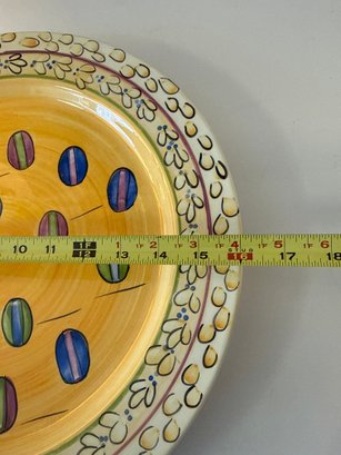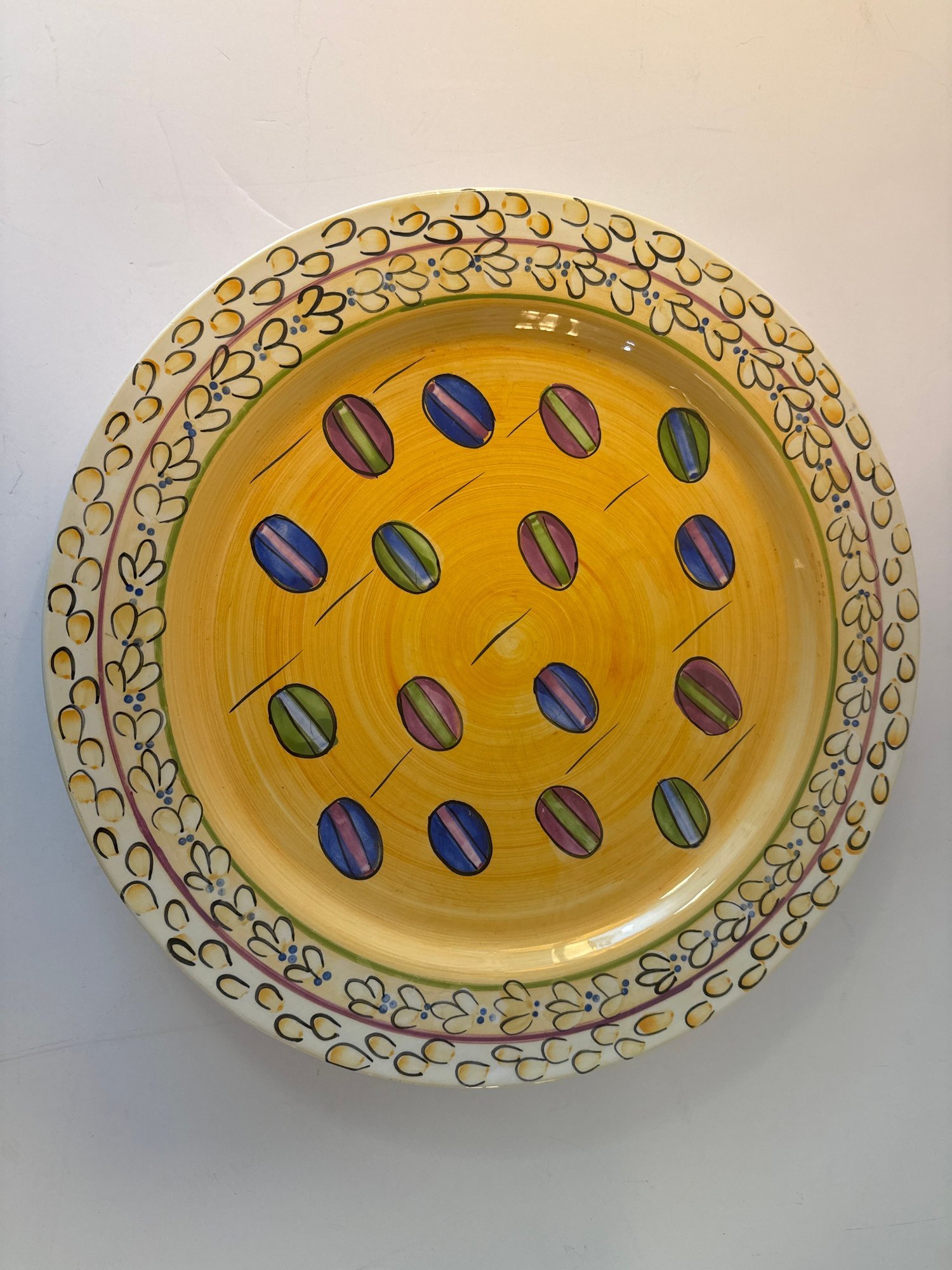 Hand-painted Ceramic Plate With Colorful Oval Motifs And Floral Border.