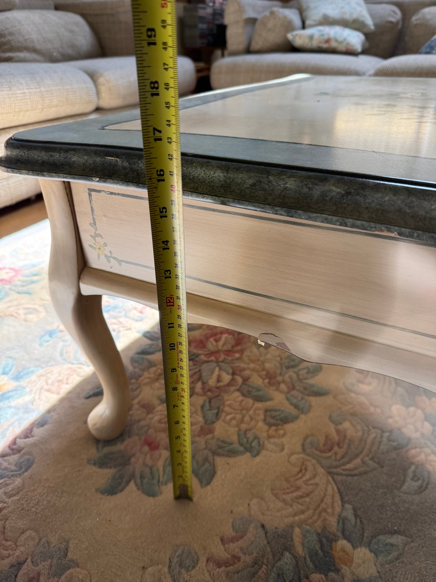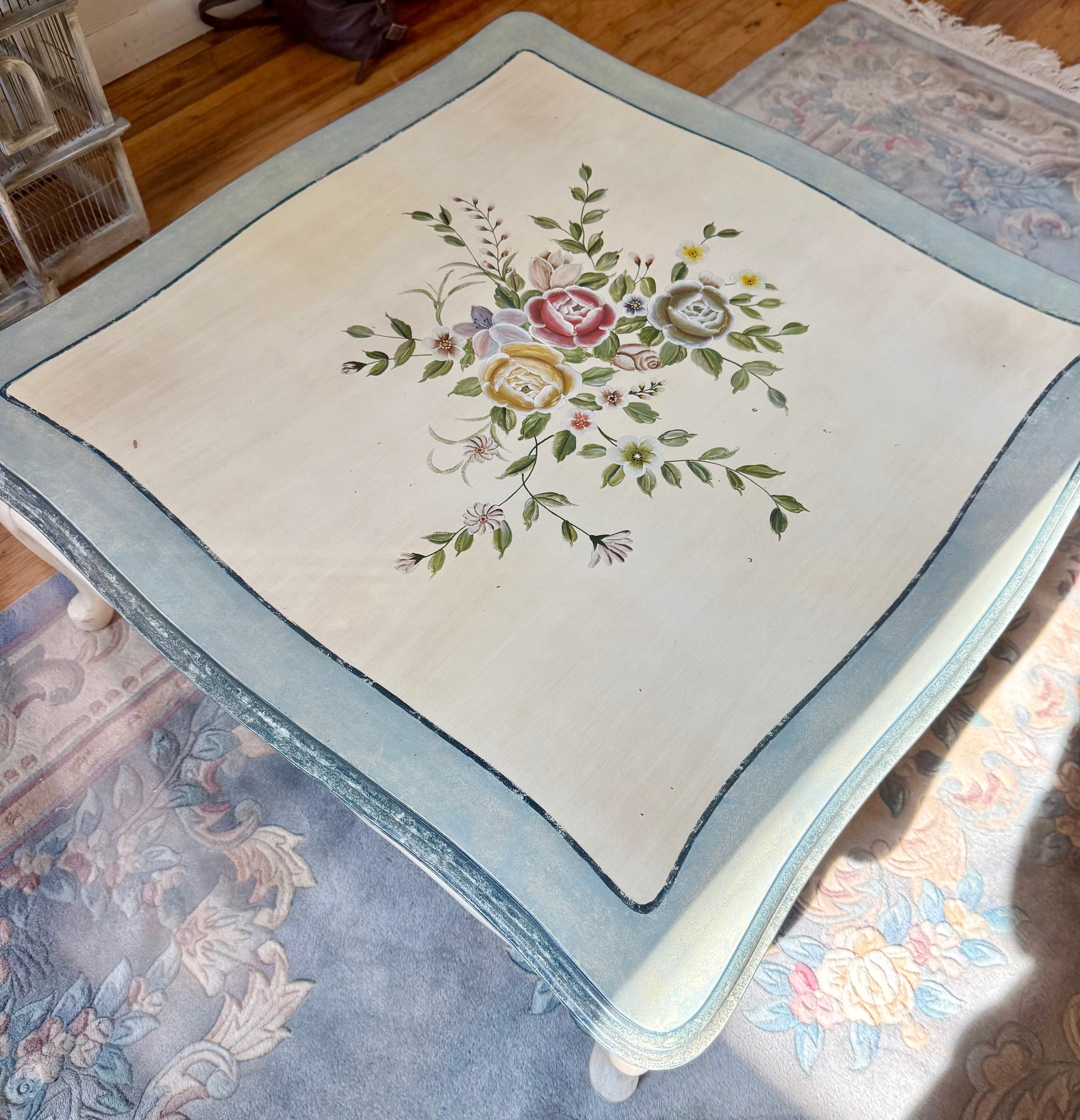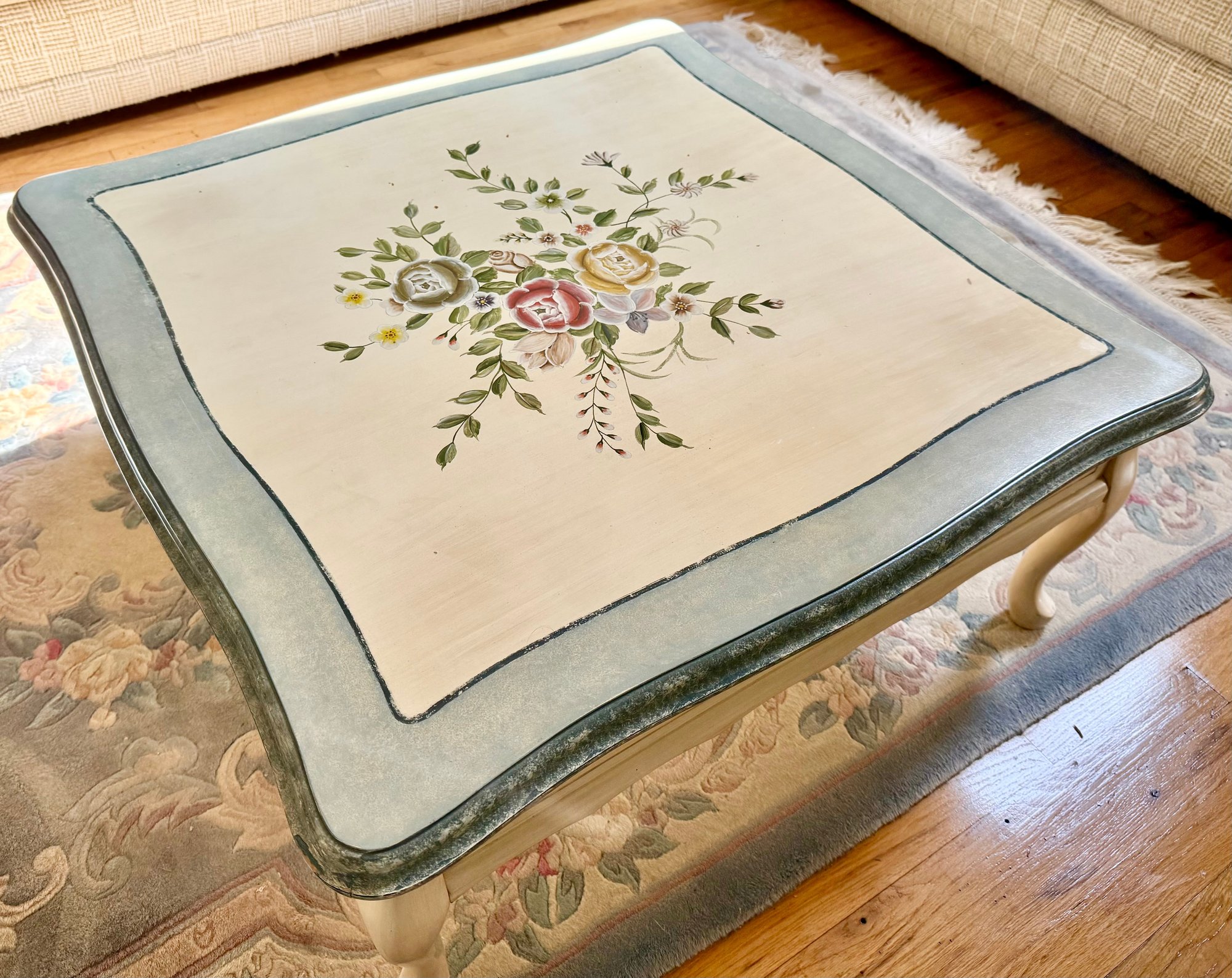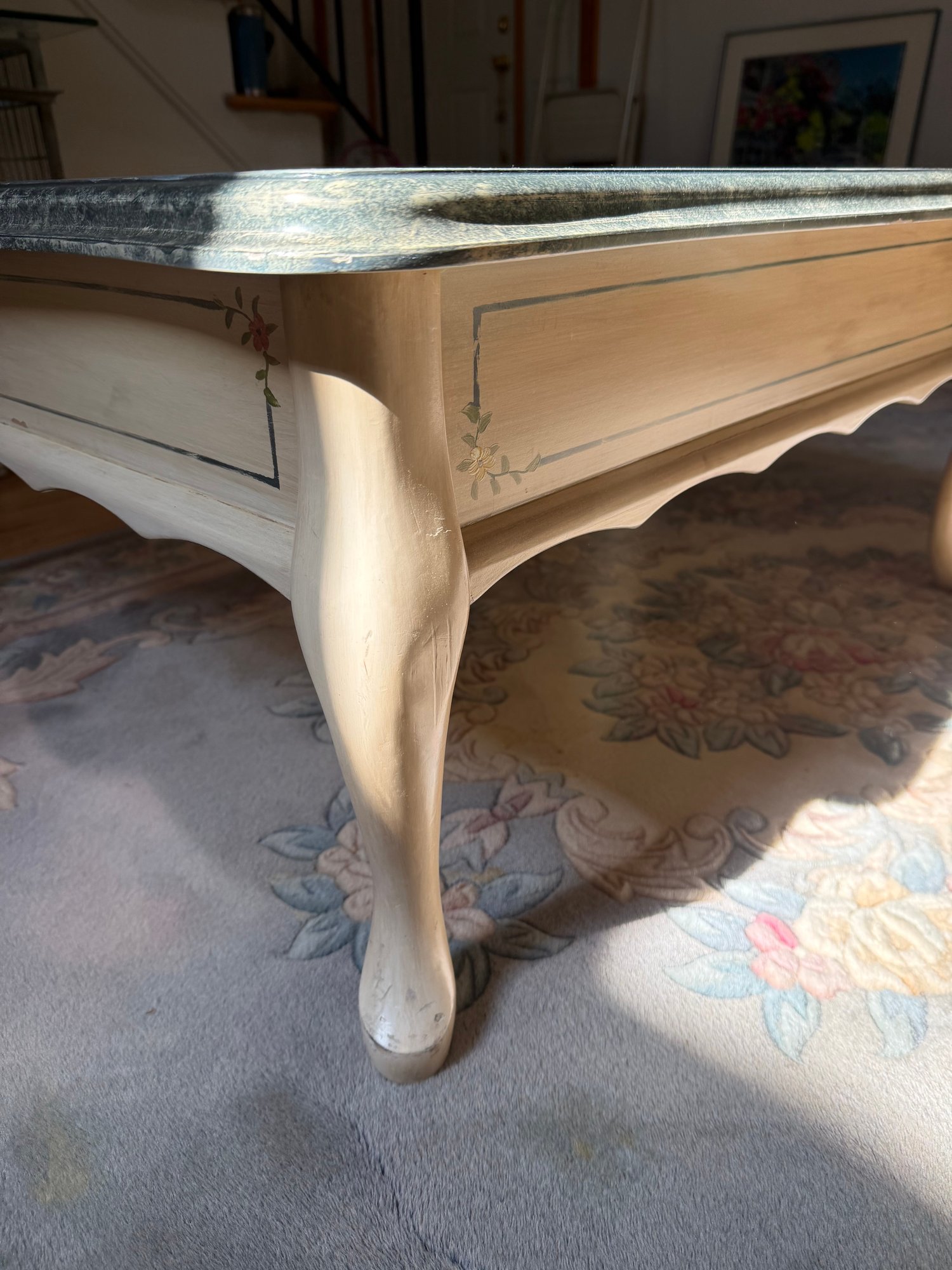 Hand-painted Floral Coffee Table With Cabriole Legs