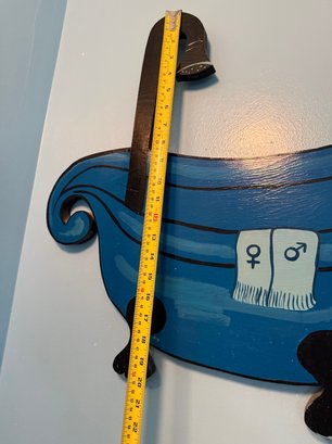 Hand-painted Wooden Bathtub Wall Art With Symbolic Towels