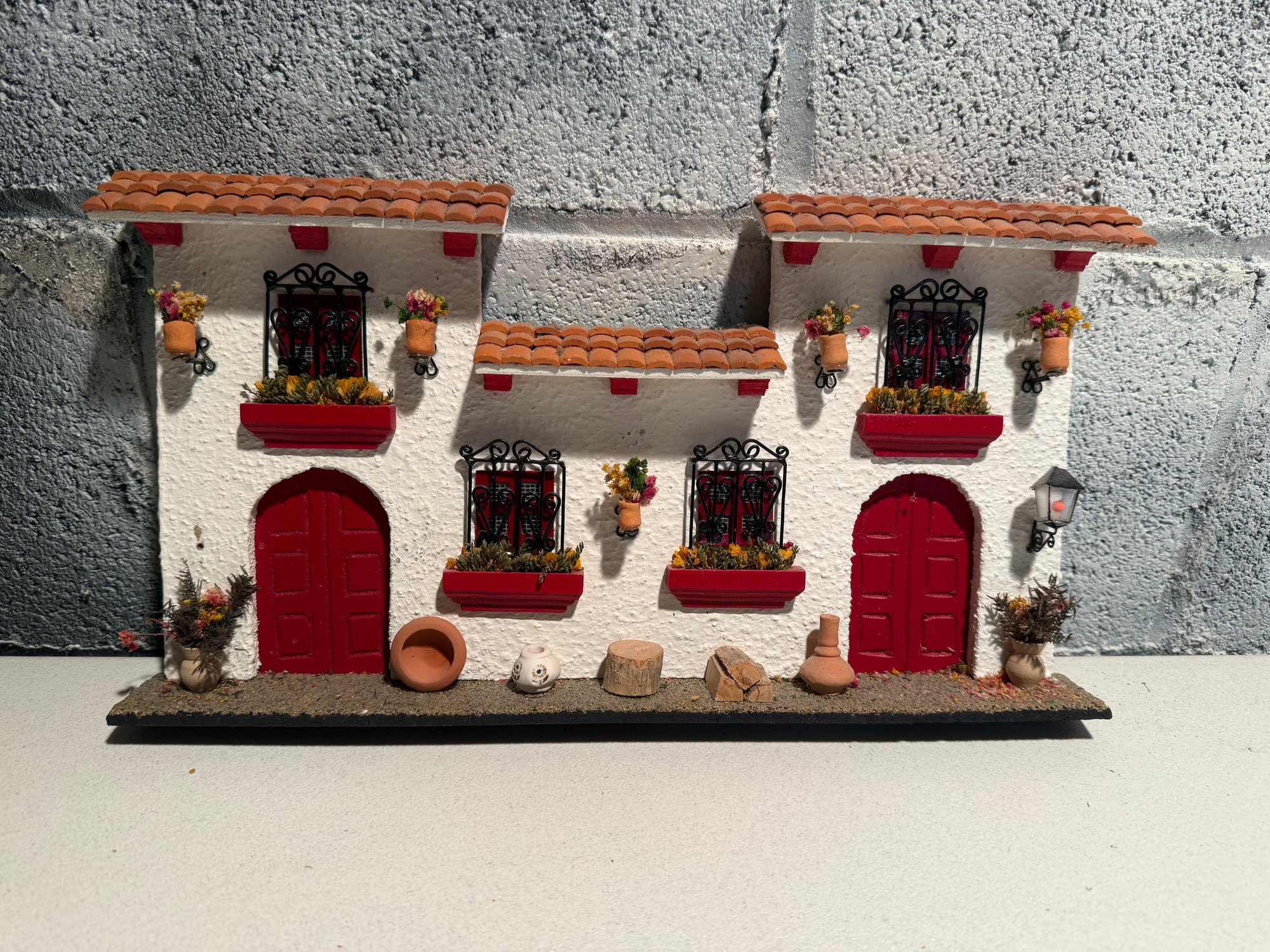 Handcrafted Miniature House Diorama Mediterranean Architectural Features, Decorative Casita & San Juan Trivet