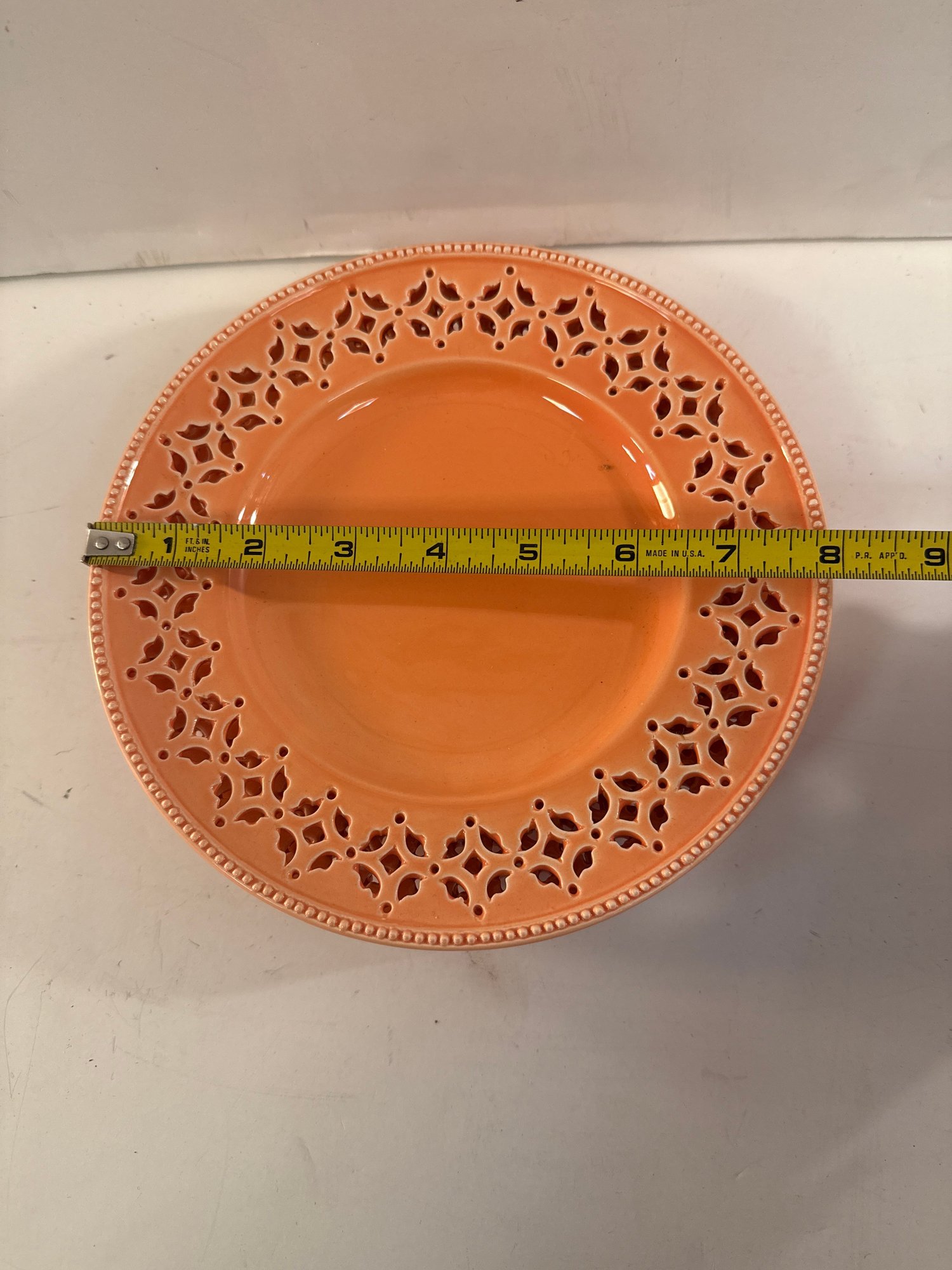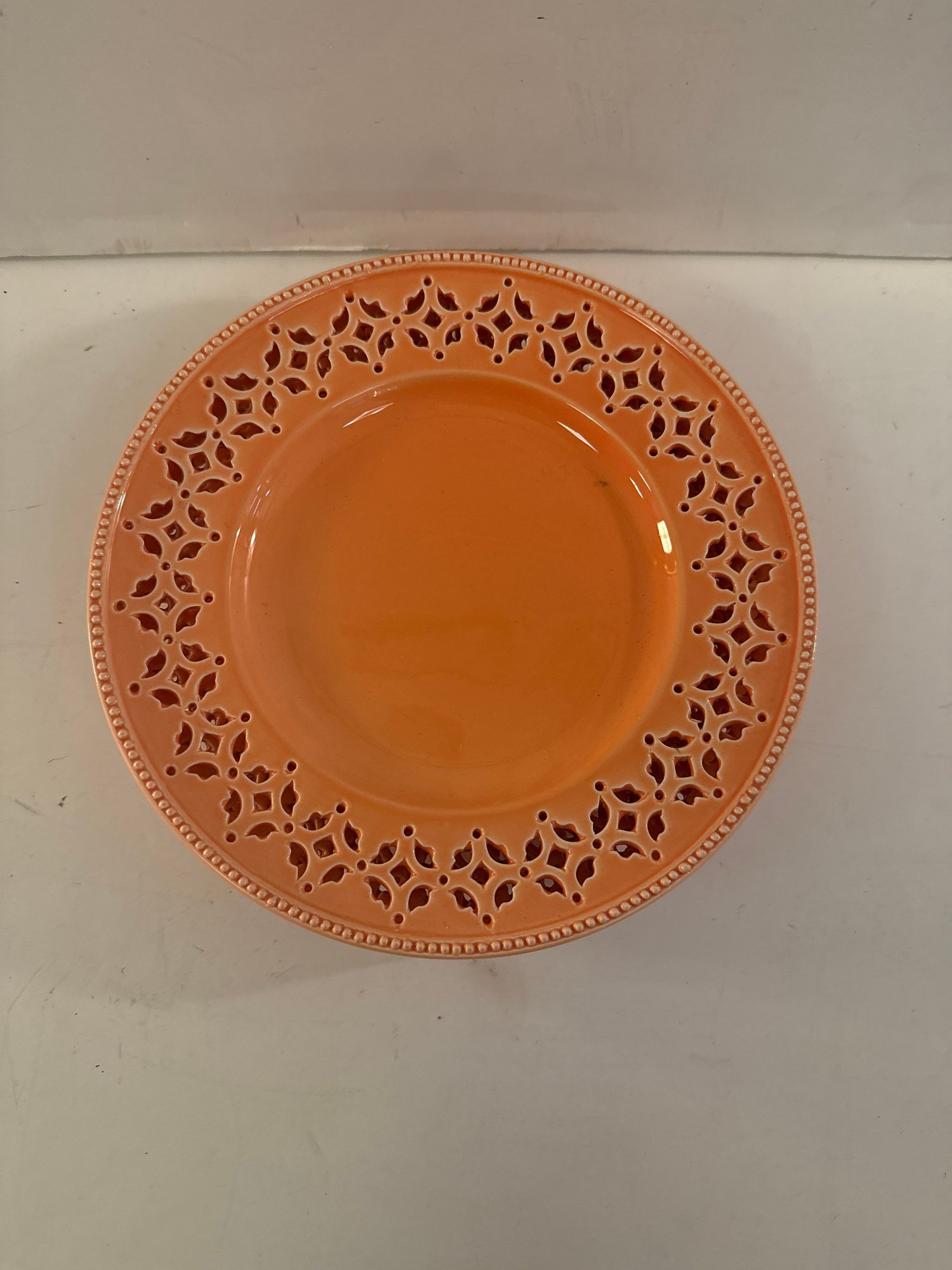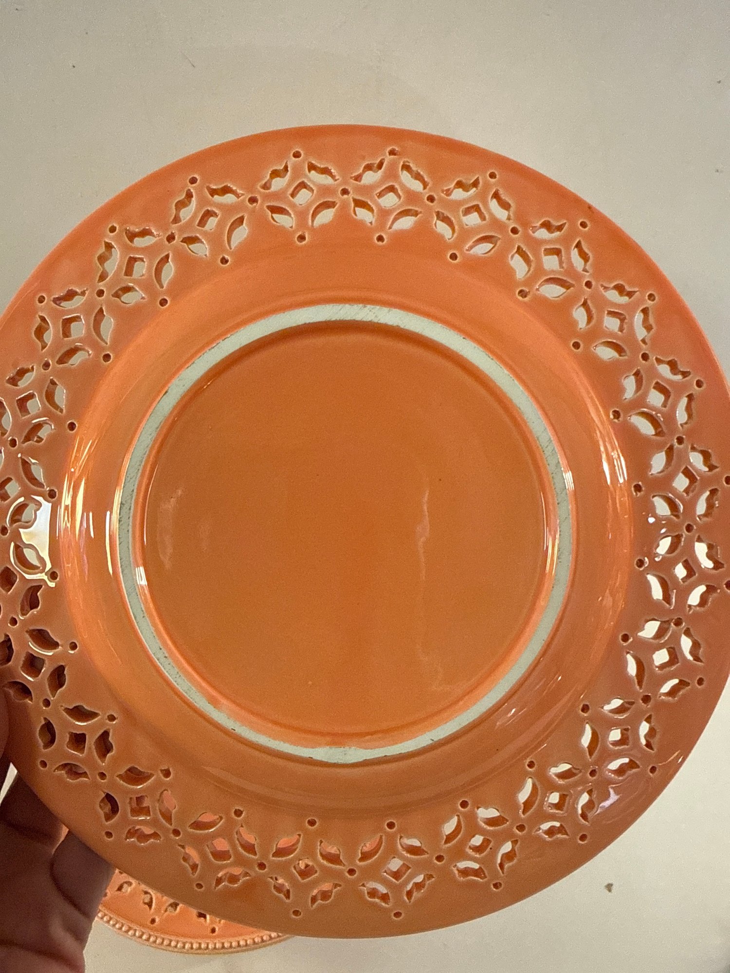Handmade Orange Ceramic Plates With A Decorative Pierced Rim.