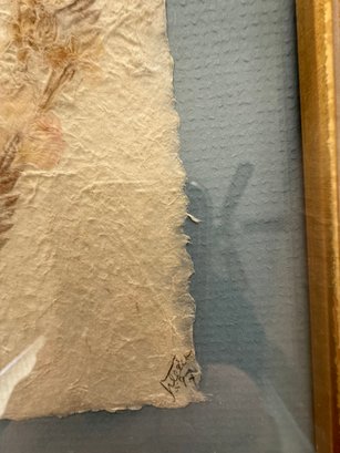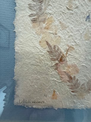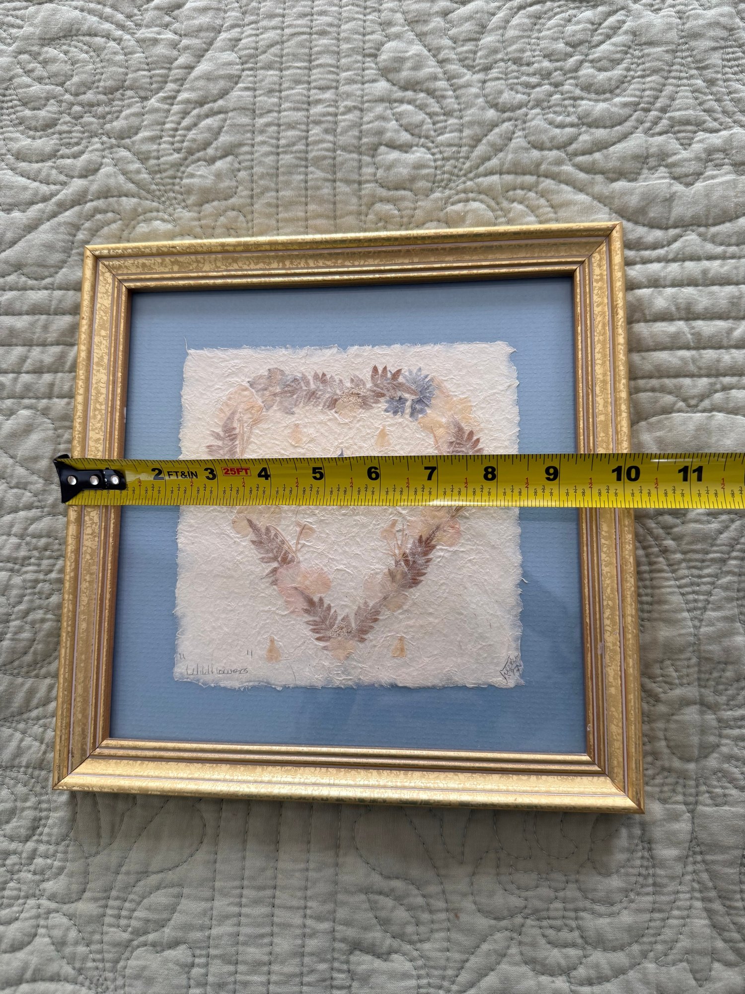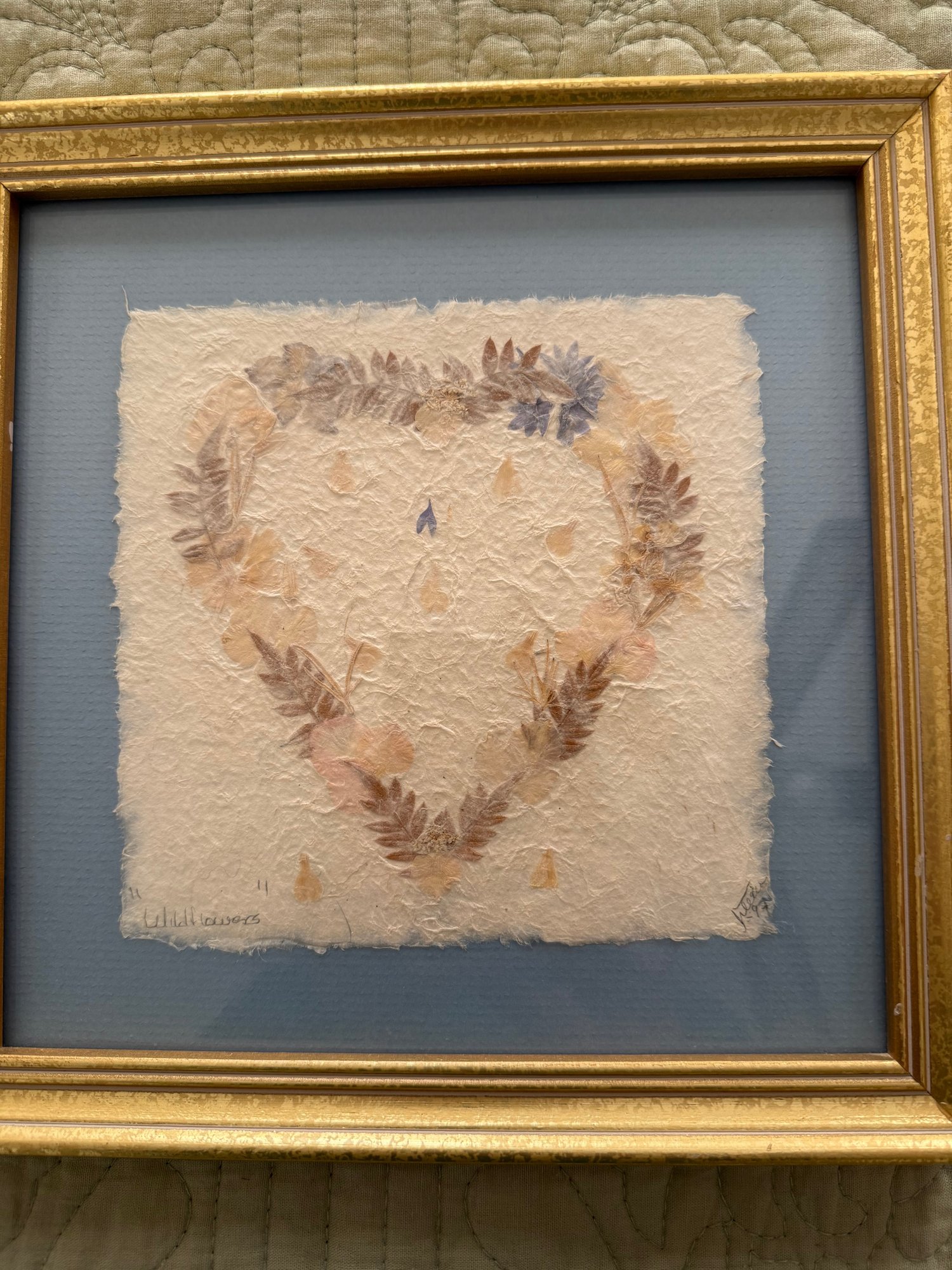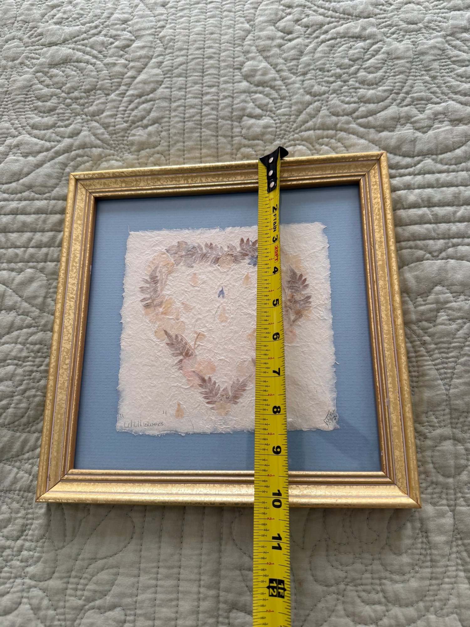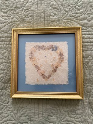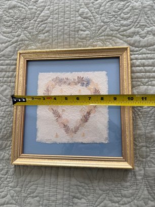 Handmade Pressed Wildflower Heart Art On Textured Paper In A Gold Frame