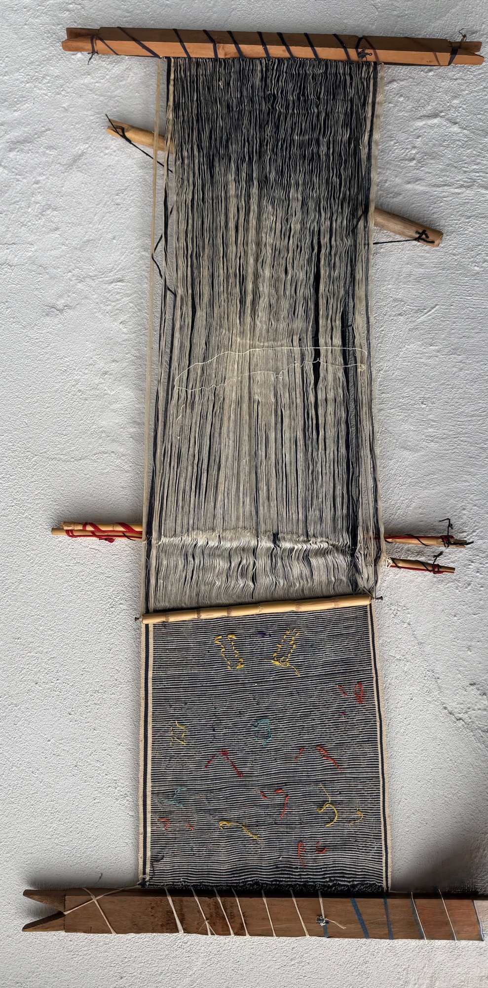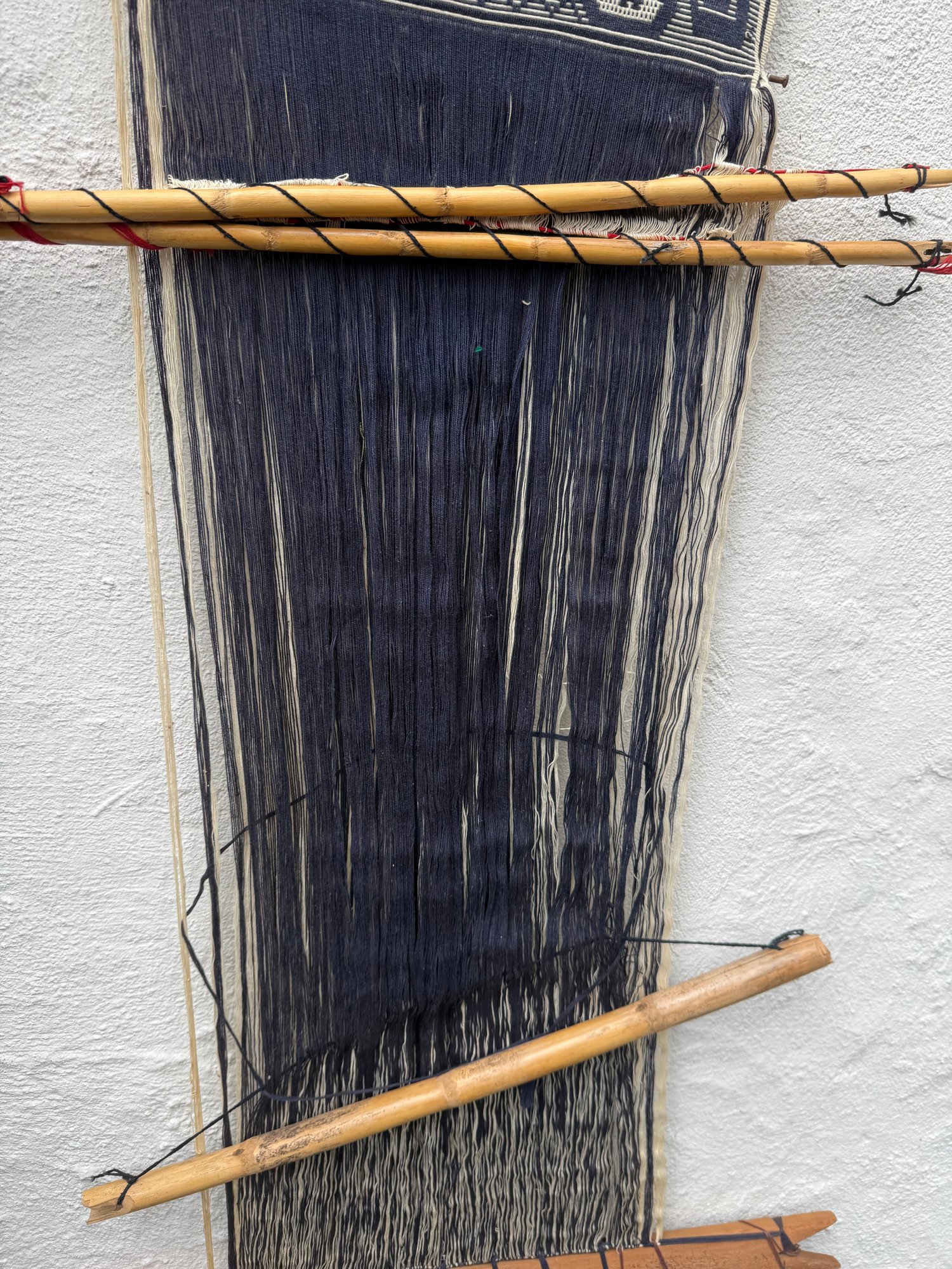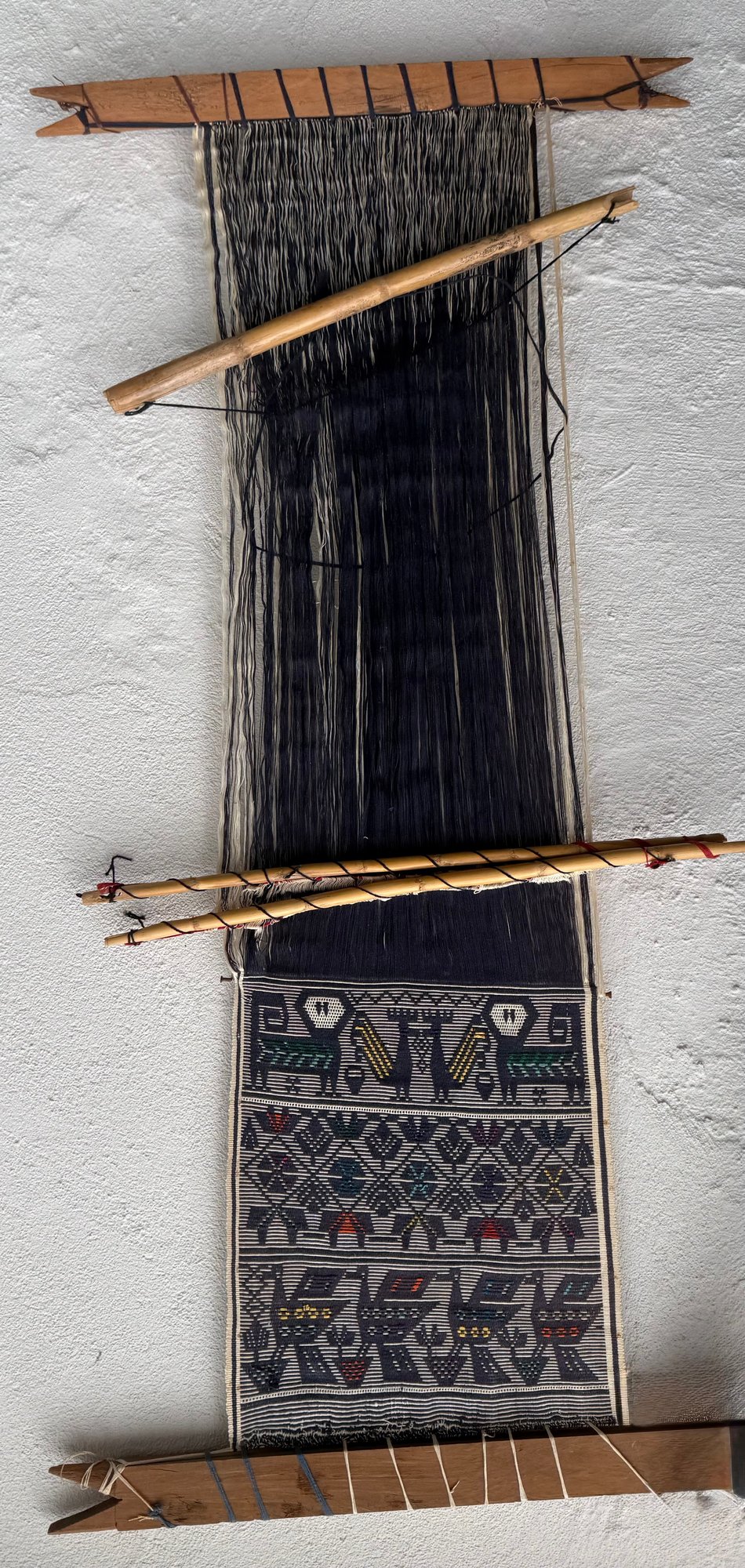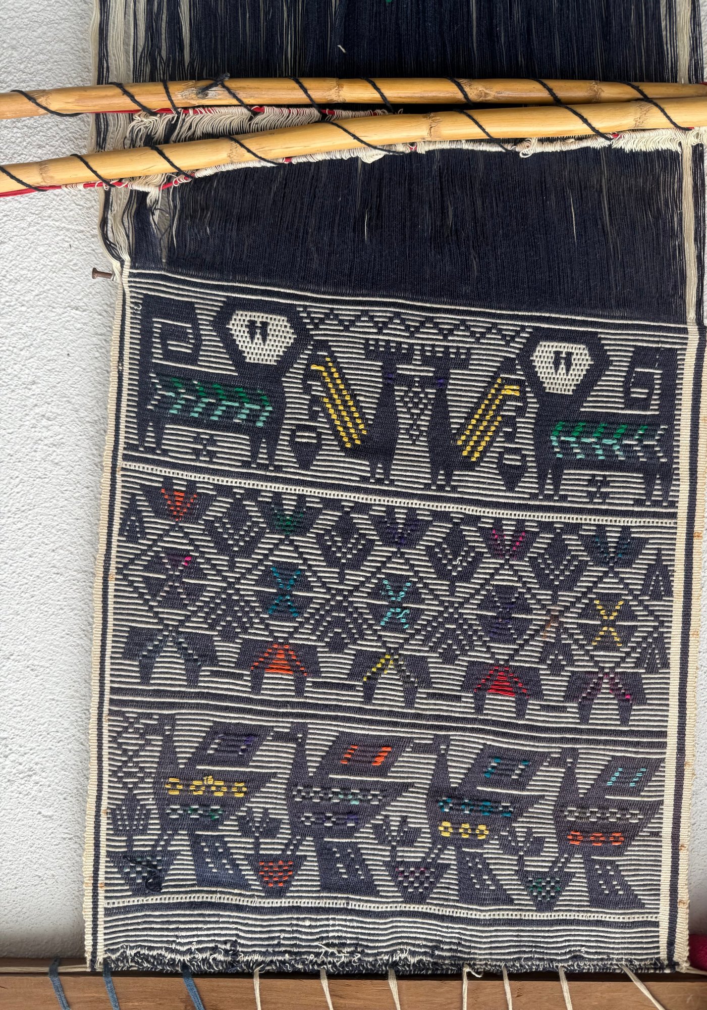 Handwoven Oaxacan Textile With Geometric And Animal Motifs On A Loom