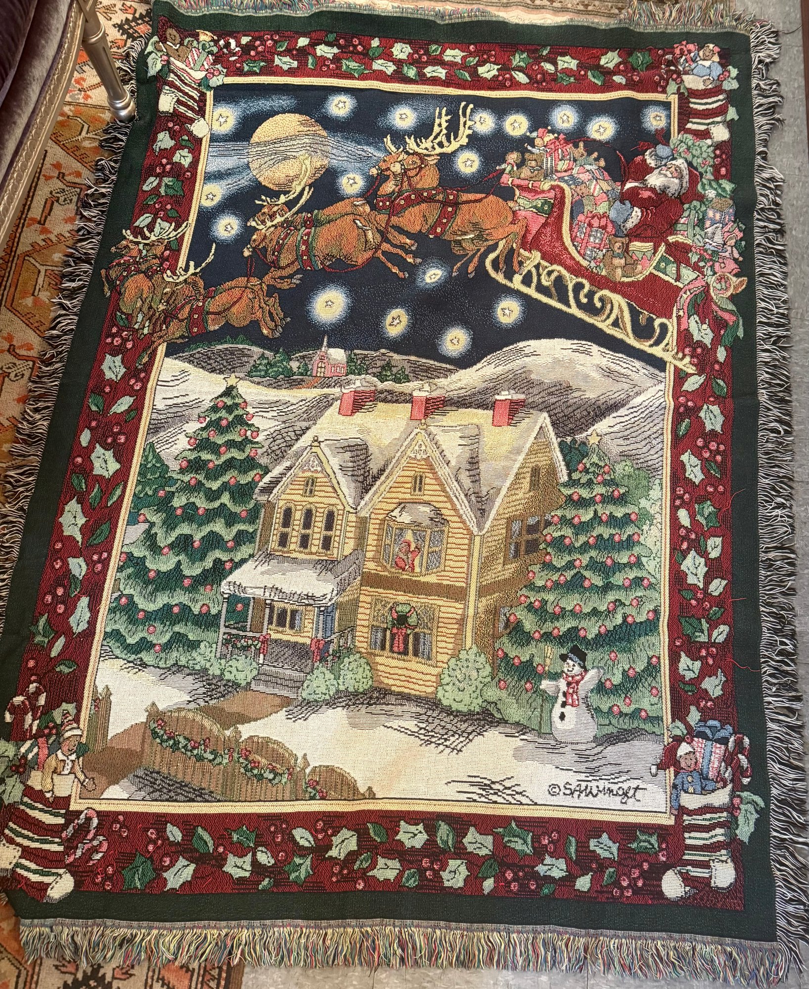 Holiday Blanket Santa Sledding Over Houses