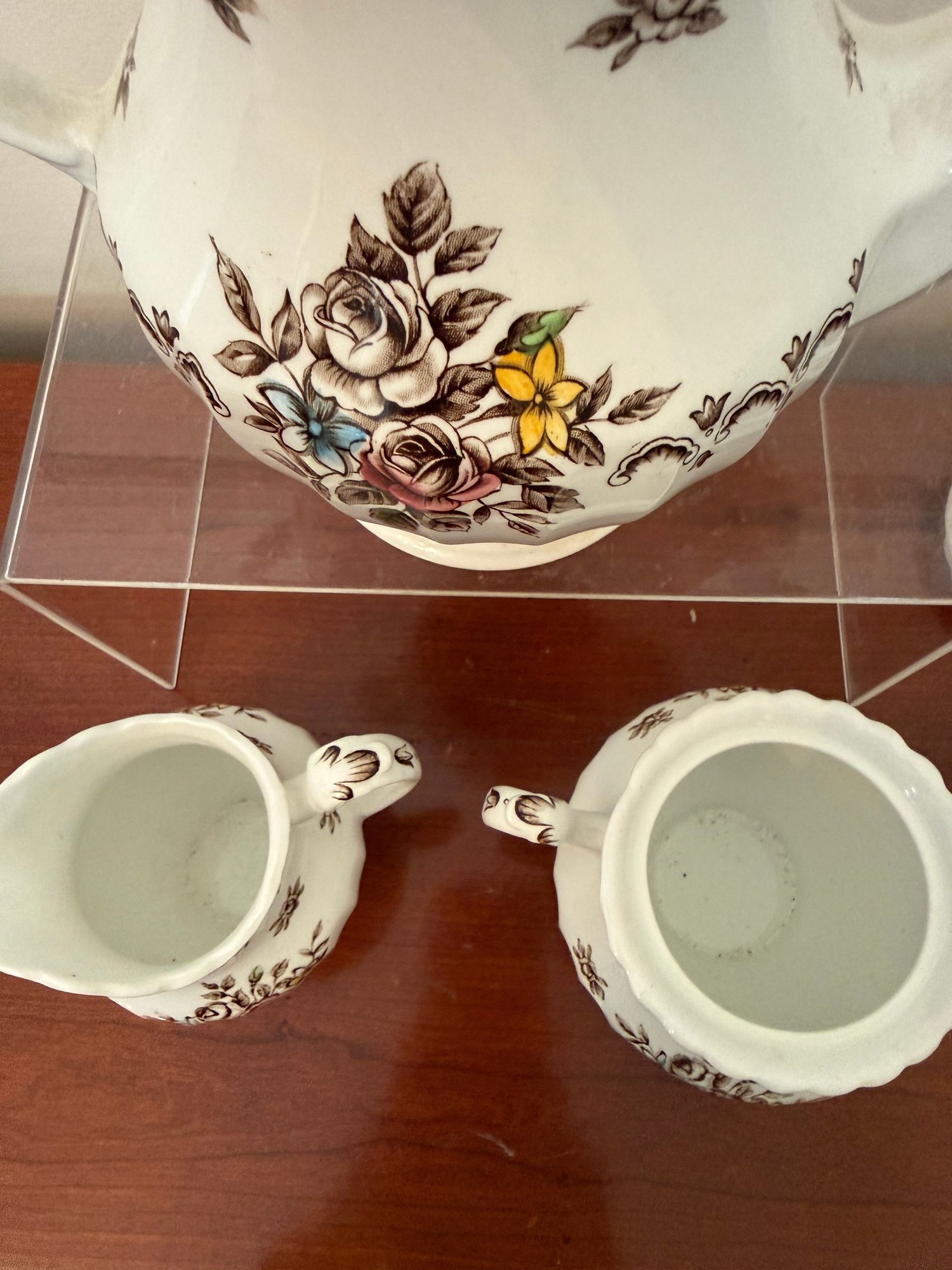 J & G Meakin Chatsworth Porcelain Tea Set With Floral Transferware