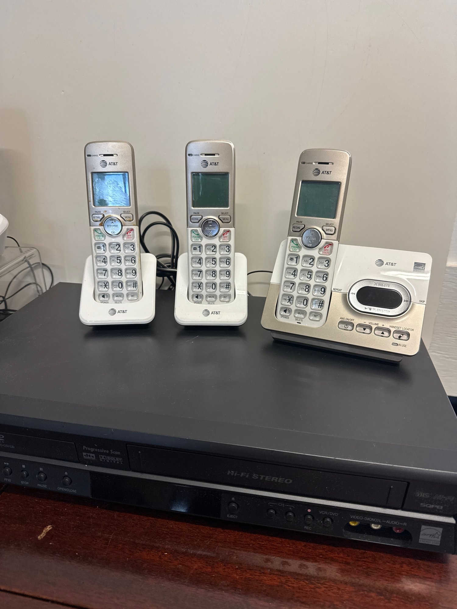 JVC DVD/VHS HR-XVC16, AT&T Cordless Phones, Vtech Cordless Phone, Timex Alarm Clock, & Flashlight