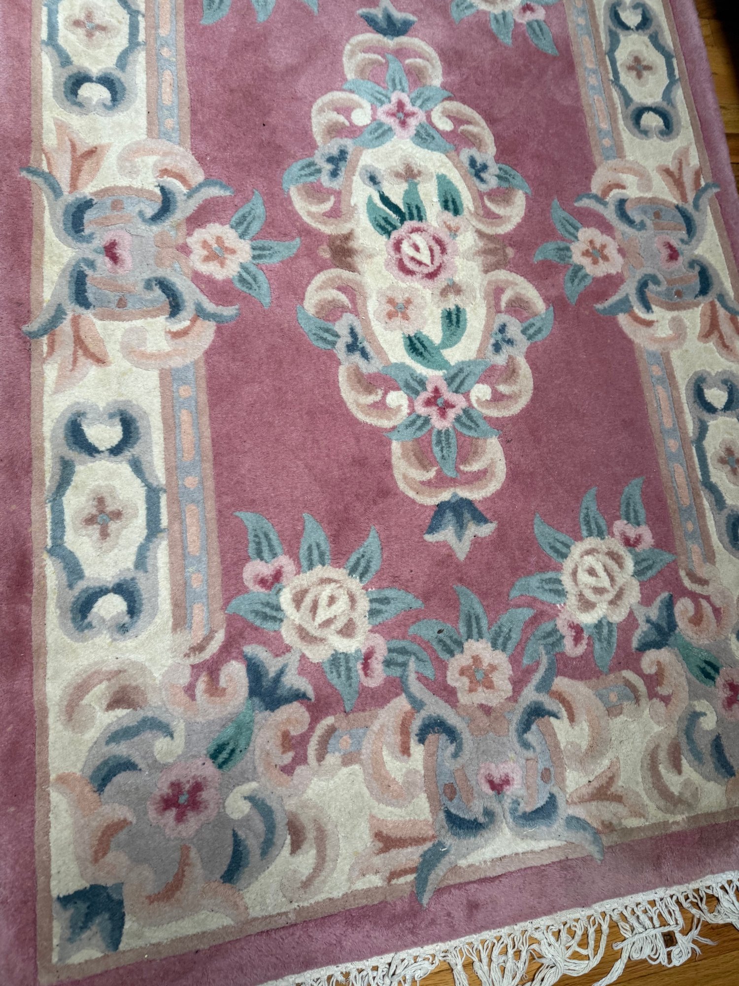 Pink Wool Rug With Floral Motifs In An Aubusson-inspired Style