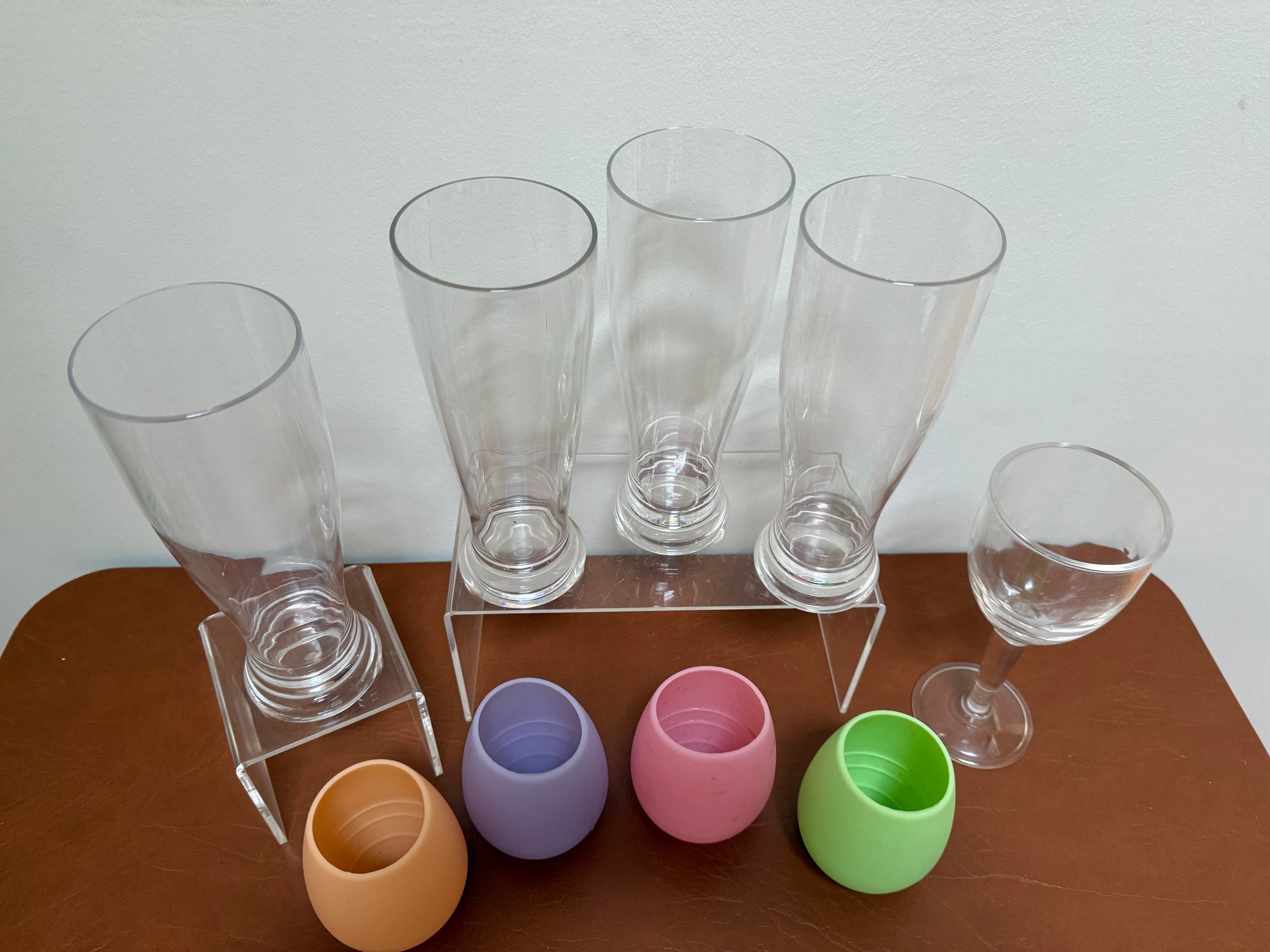 Plastic Pilsner Glasses, Plastic Wine And Spring Colored Rubberish Wine Glasses
