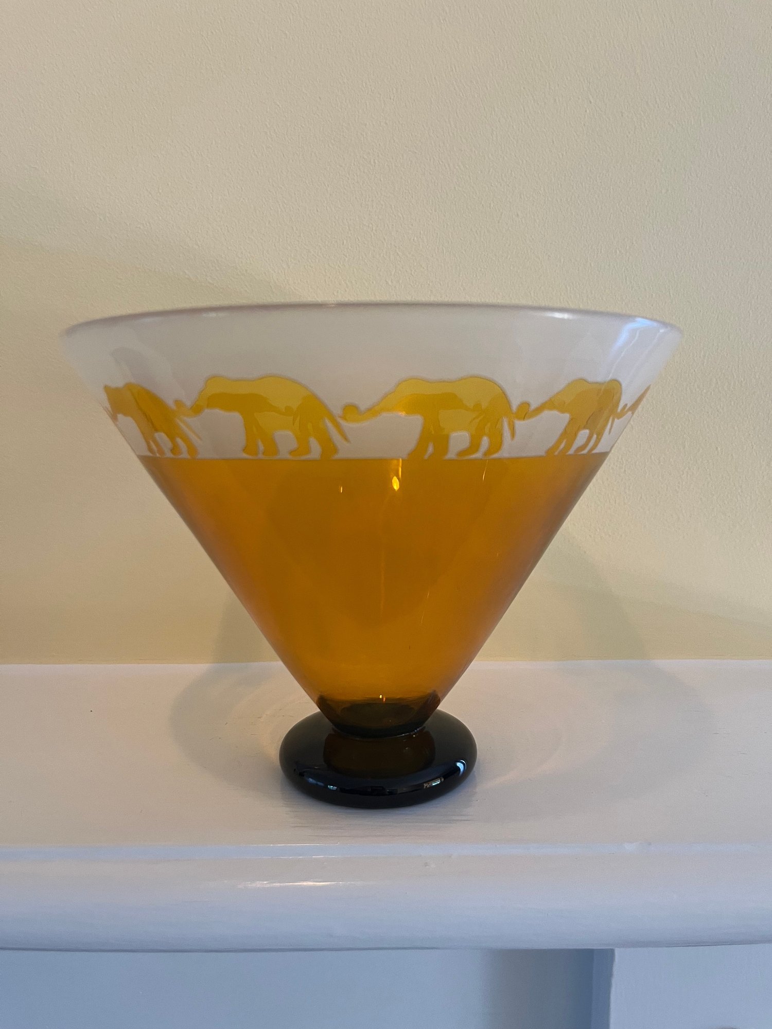 Limited Edition Correia Art Glass Etched Amber And White Elephant Bowl 217/500