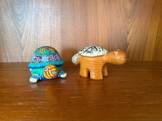 Lisa Larson Ceramic Turtle Figurine & Mexican Hand-painted Ceramic Turtle Trinket