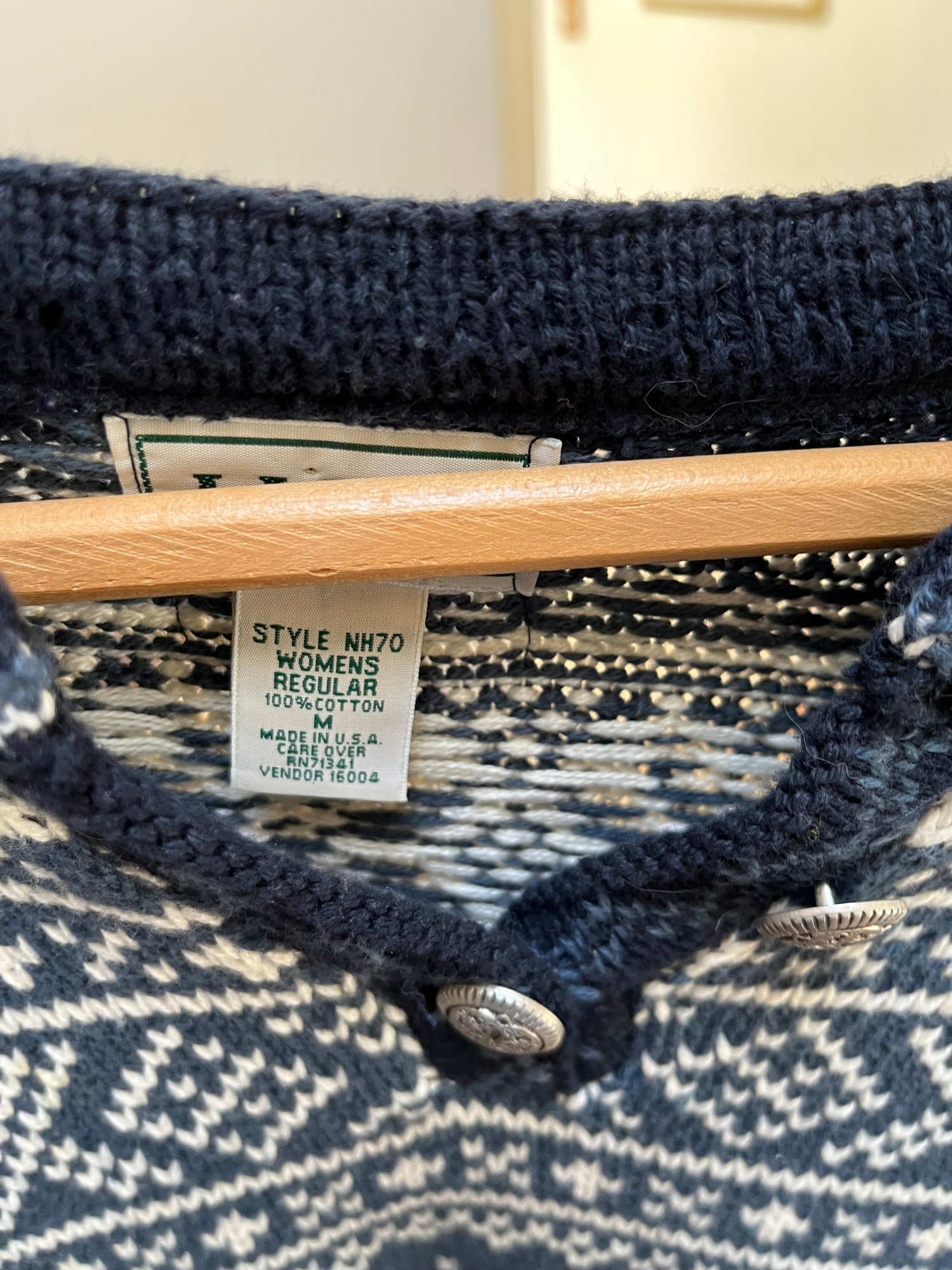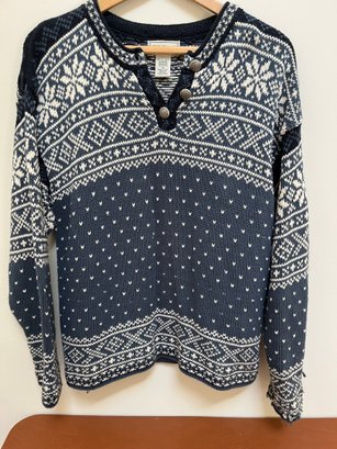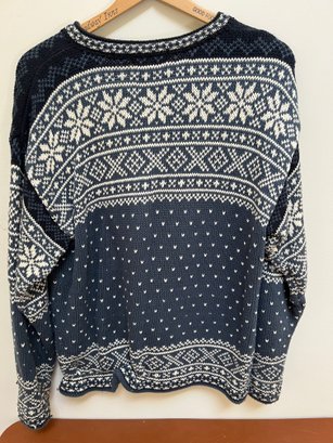 LL Bean Nordic (Cotton) Sweater, Size M, Fraying On One Sleeve