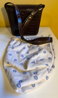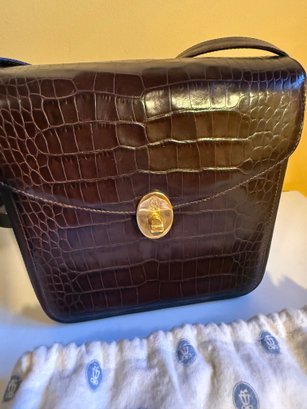 Lladro Embossed Crocodile-patterned Handbag With Gold-tone Clasp And Branded Dust Bag