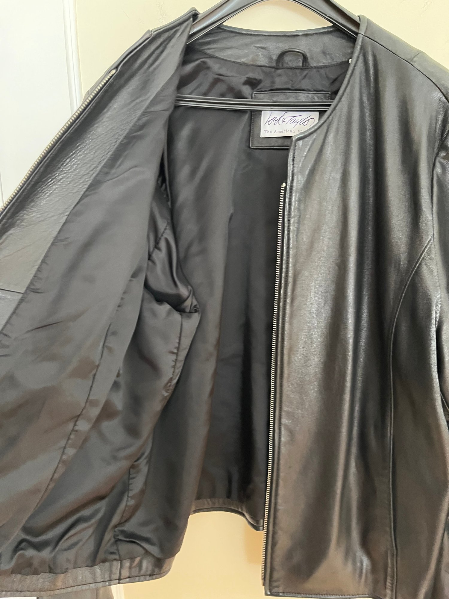 Lord & Taylor Soft Leather Black Zip Jacket, Size 1X