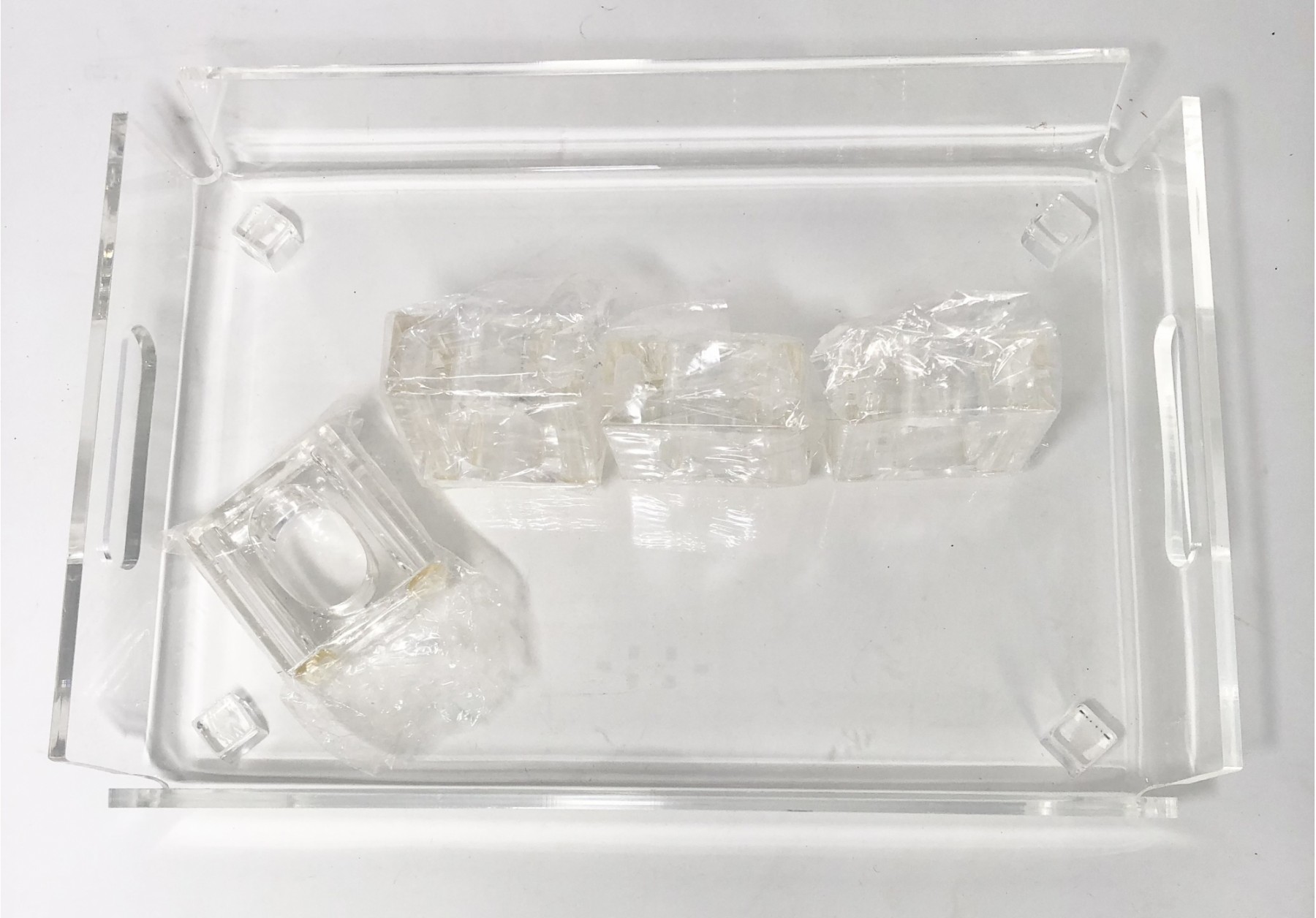 Notes: Napkin rings still in packaging. The tray has a few scratches.