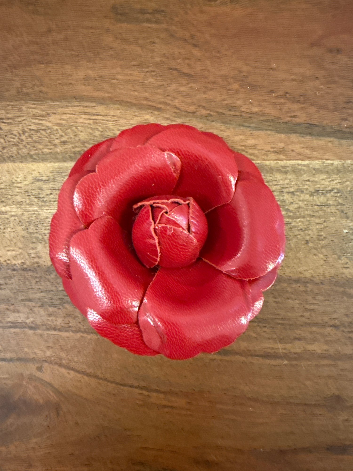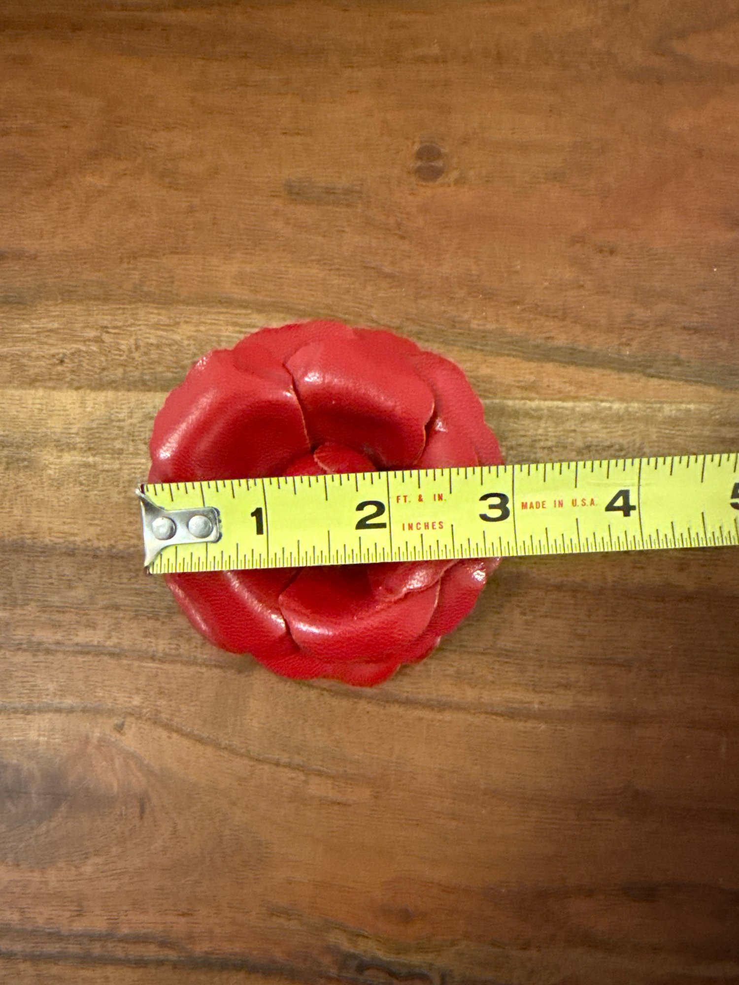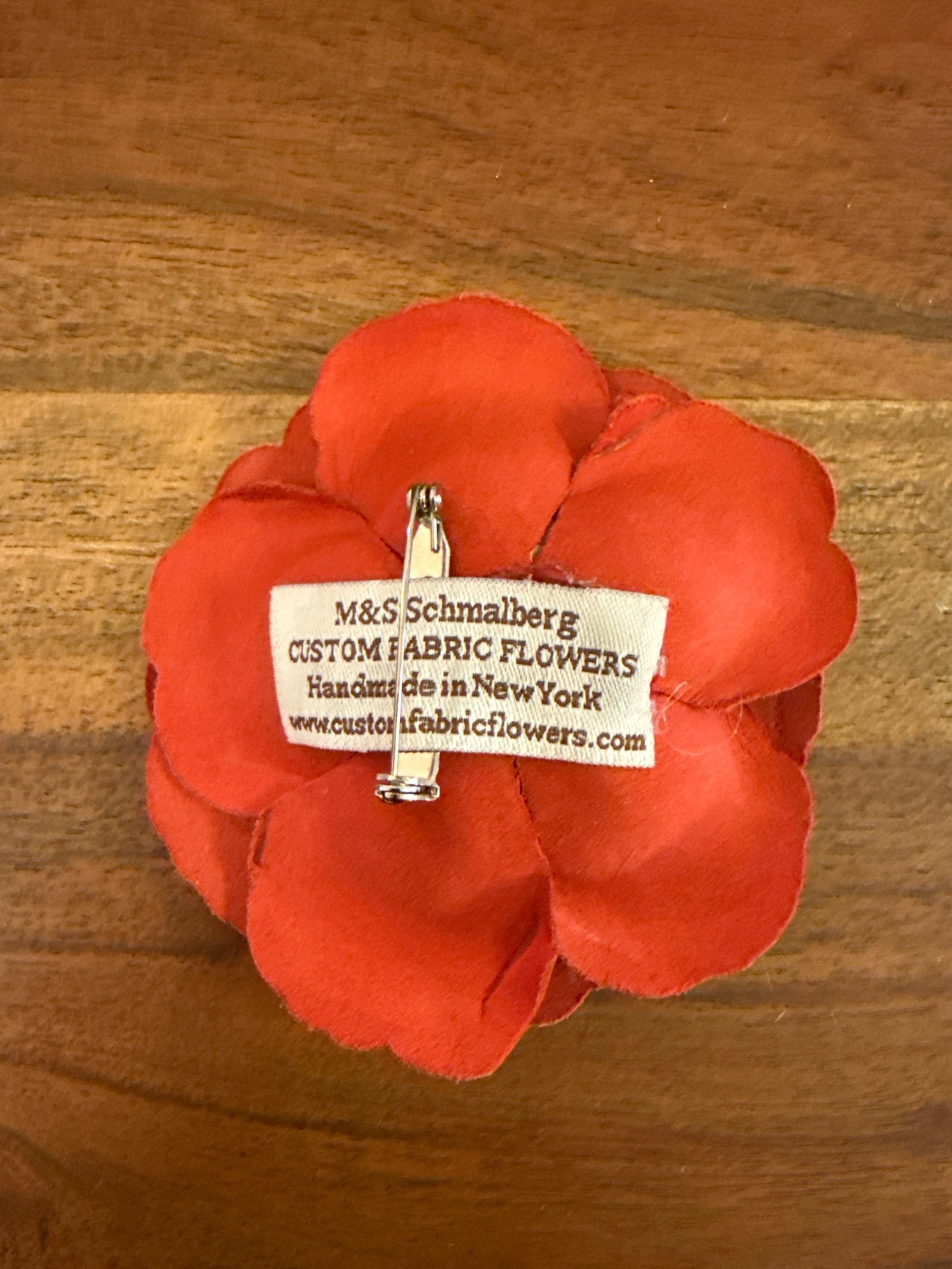 M&S Custom Red Fabric Flower Pin Handmade In New York