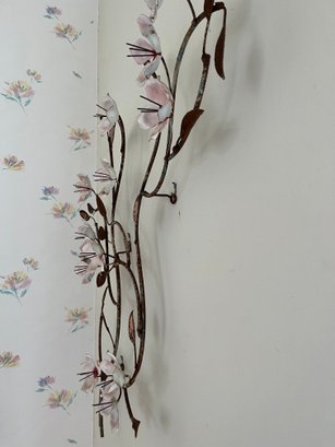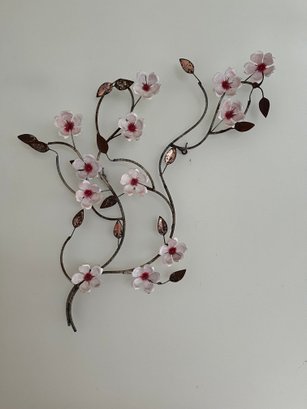 Metal And Glass Wall Art Depicting Cherry Blossoms On A Branch