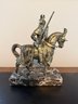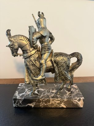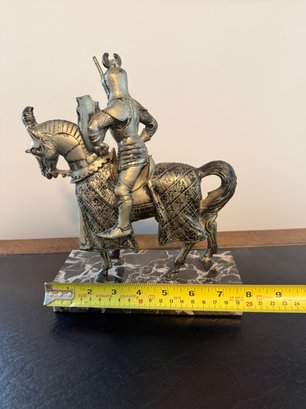 Metallic Decorative Figurine Of A Knight On Horseback On A Marble Base