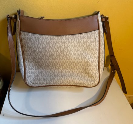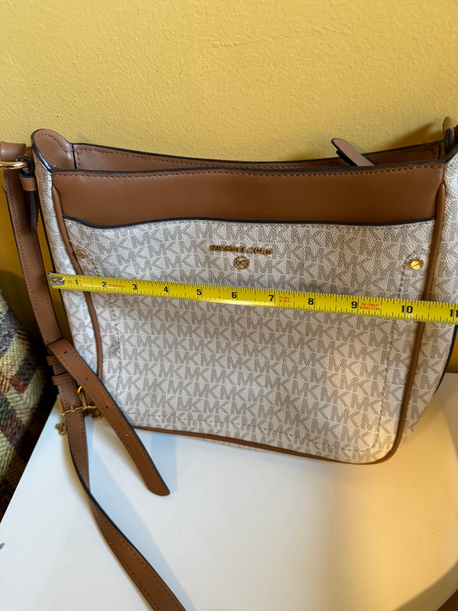 Michael Kors Jet Set Medium Logo Shoulder Bag In Vanilla/Acorn