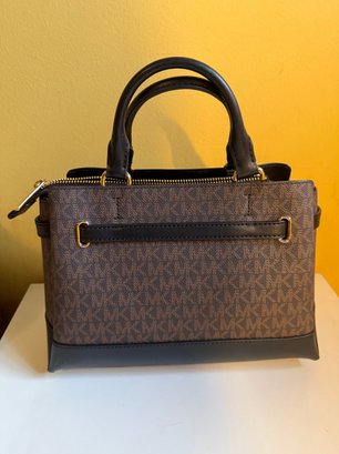 Michael Kors Reed Small Signature Logo Satchel With Brown MK Print