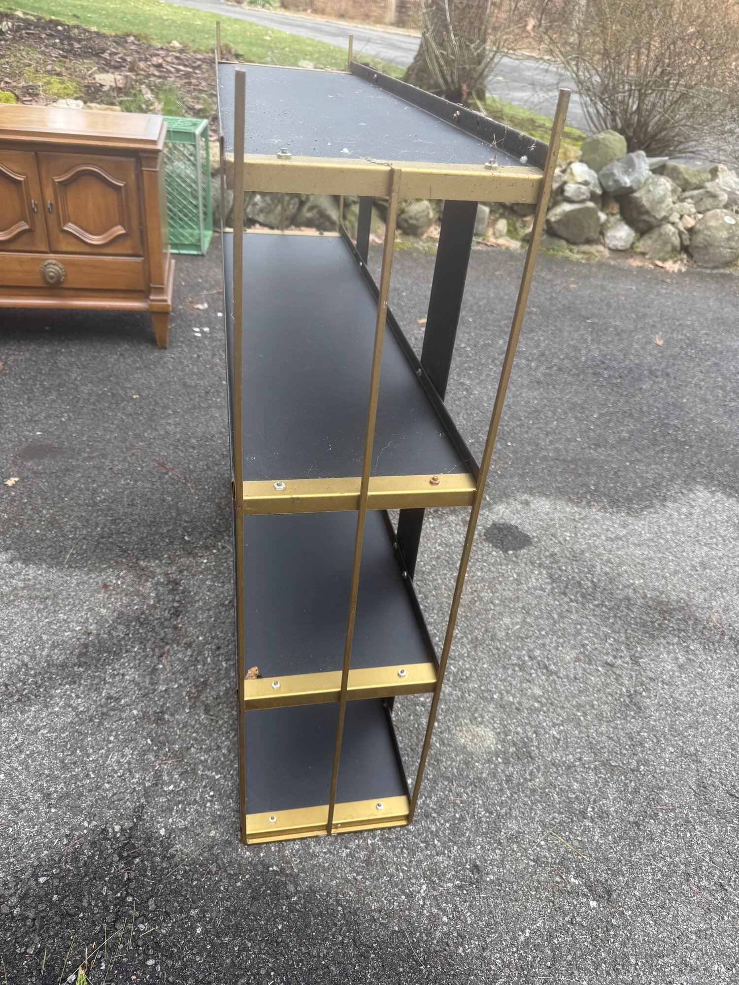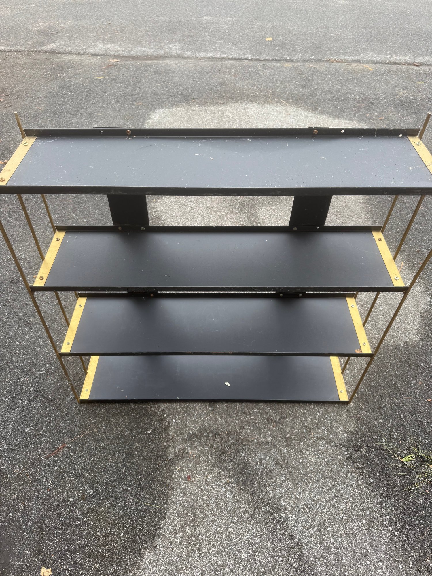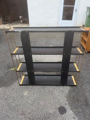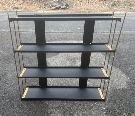 Mid-century Modern Four-tier Metal Shelf Unit With Brass Accents