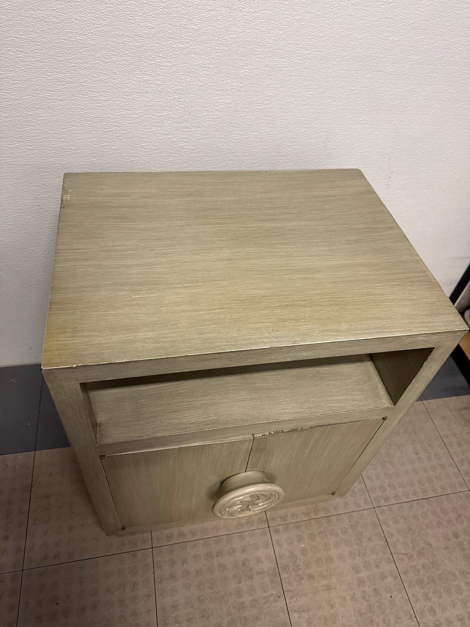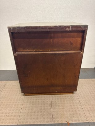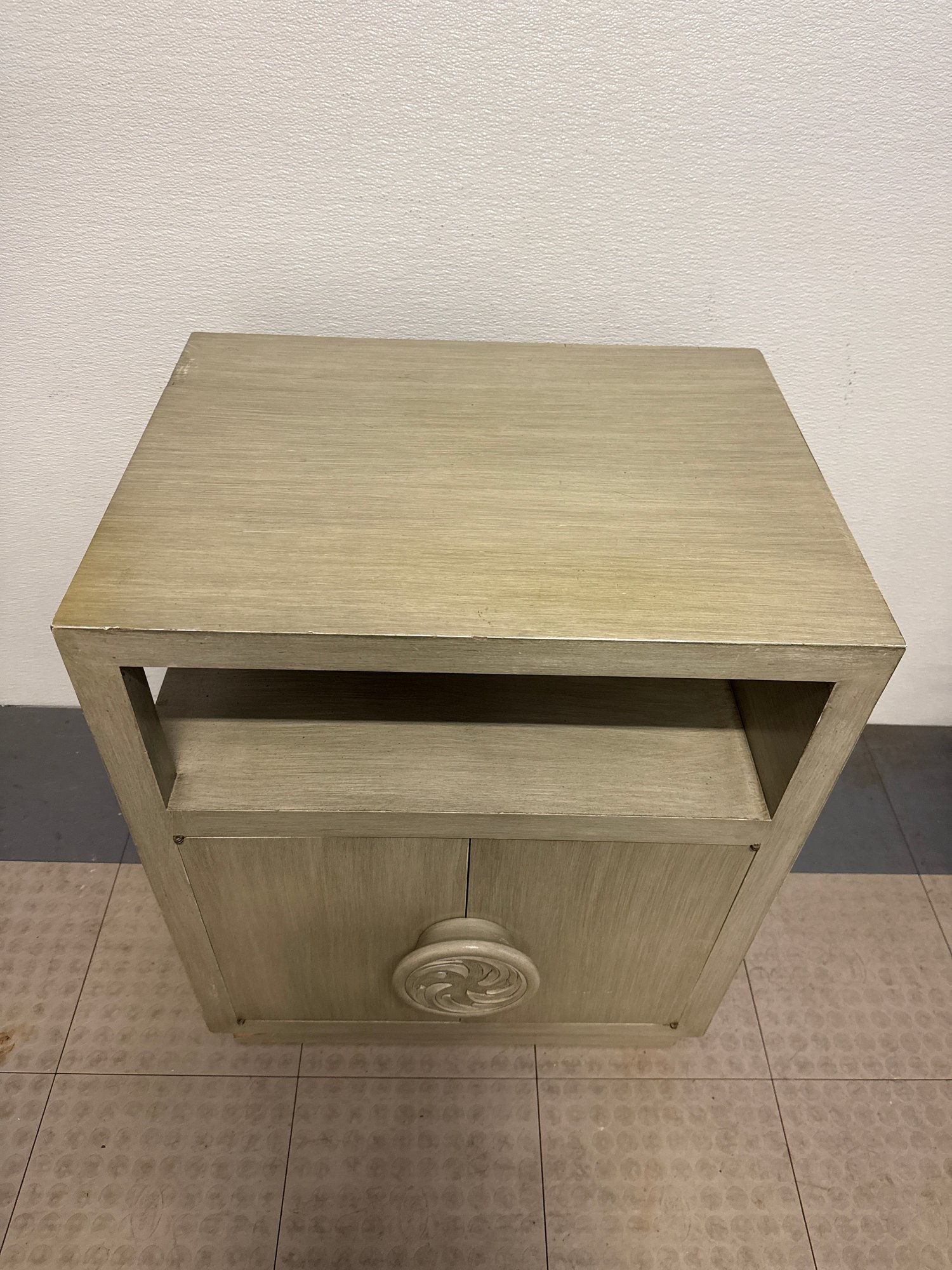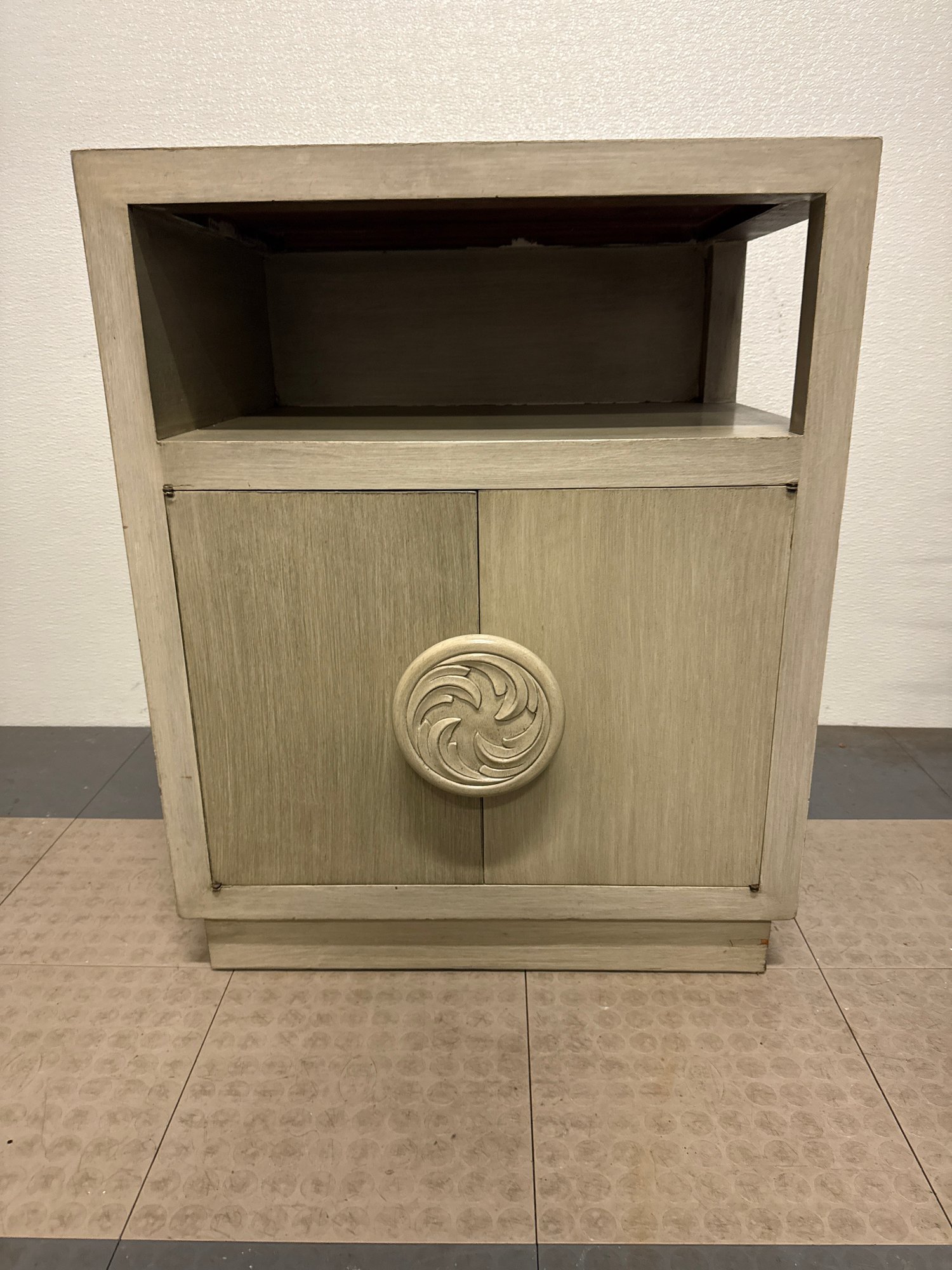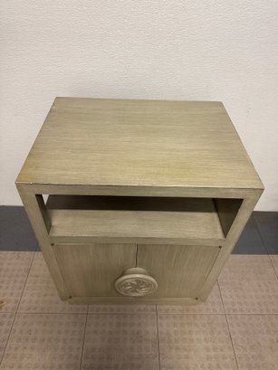 Mid-Century Modern Style Wooden Bedside Table With A Carved Circular Motif #2