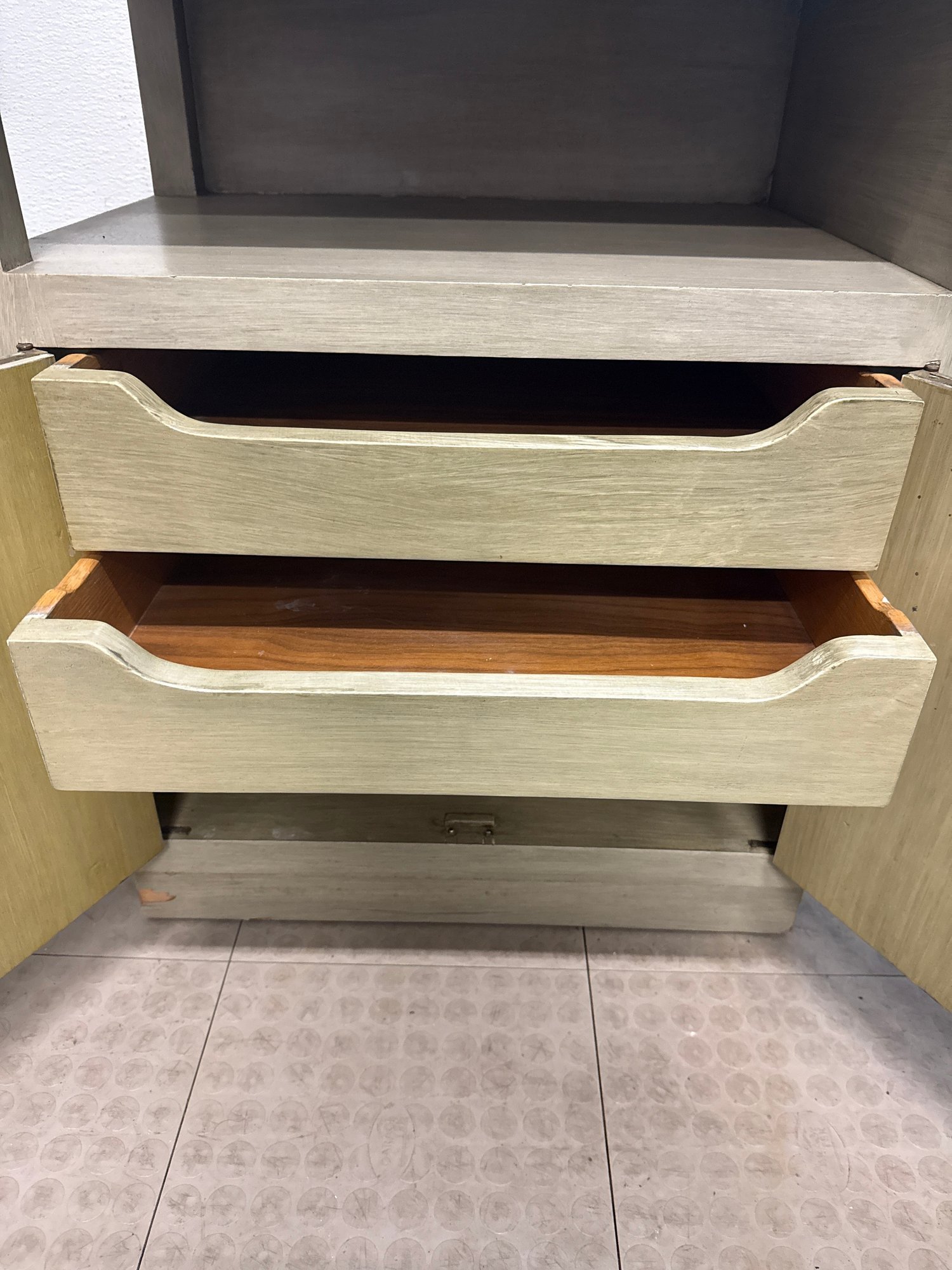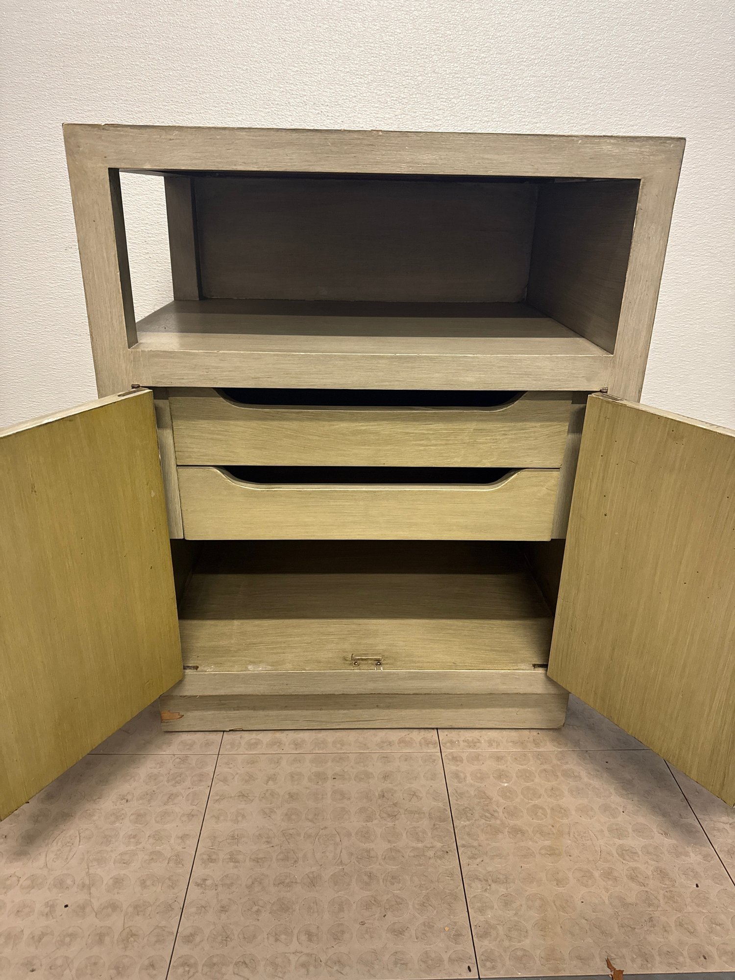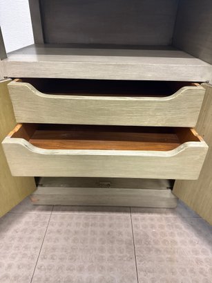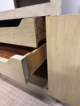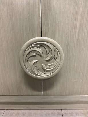 Mid-Century Modern Style Wooden Bedside Table With A Carved Circular Motif #2
