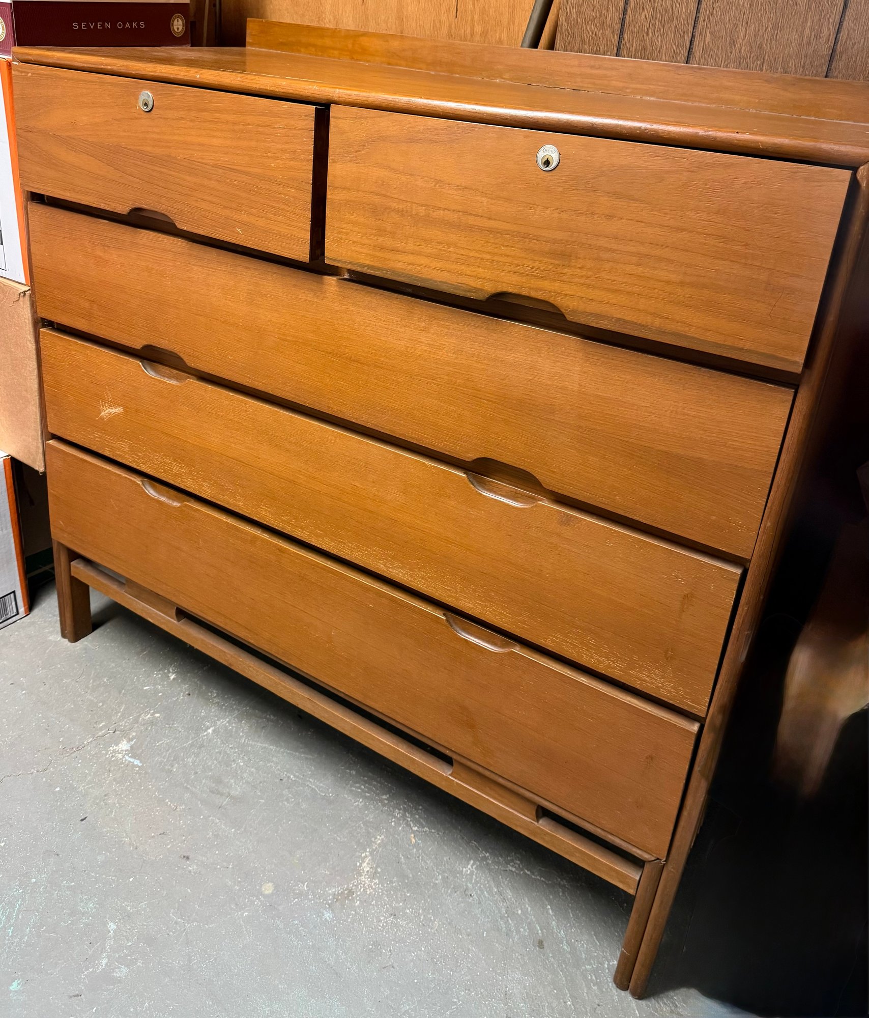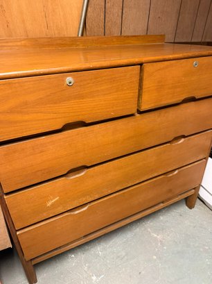 Mid-century Modern Wooden Dresser With Five Drawers And Tapered Legs