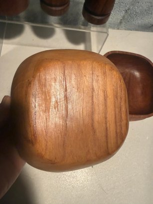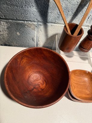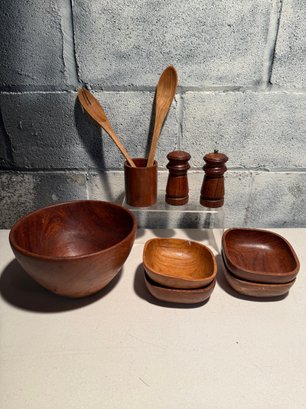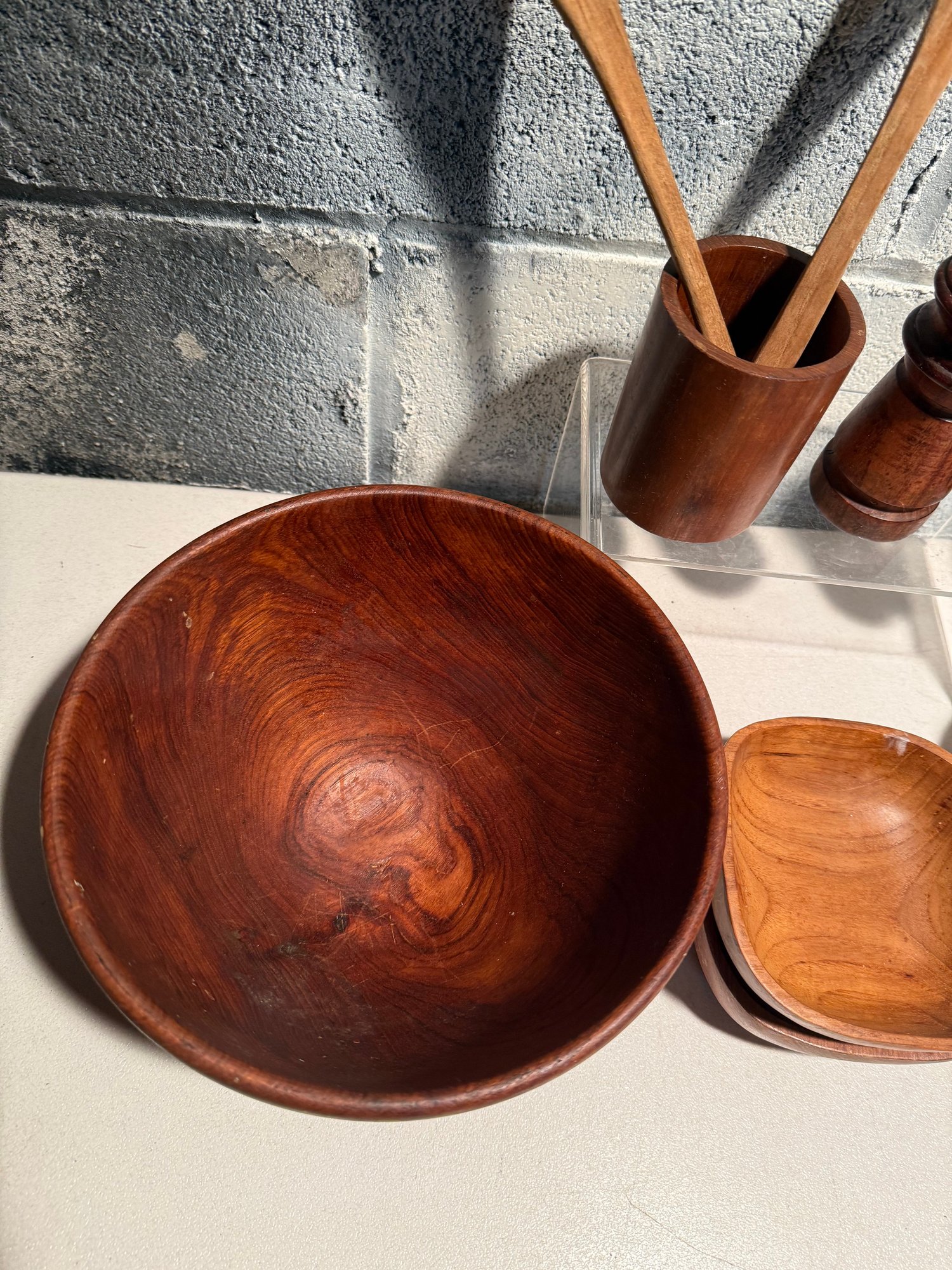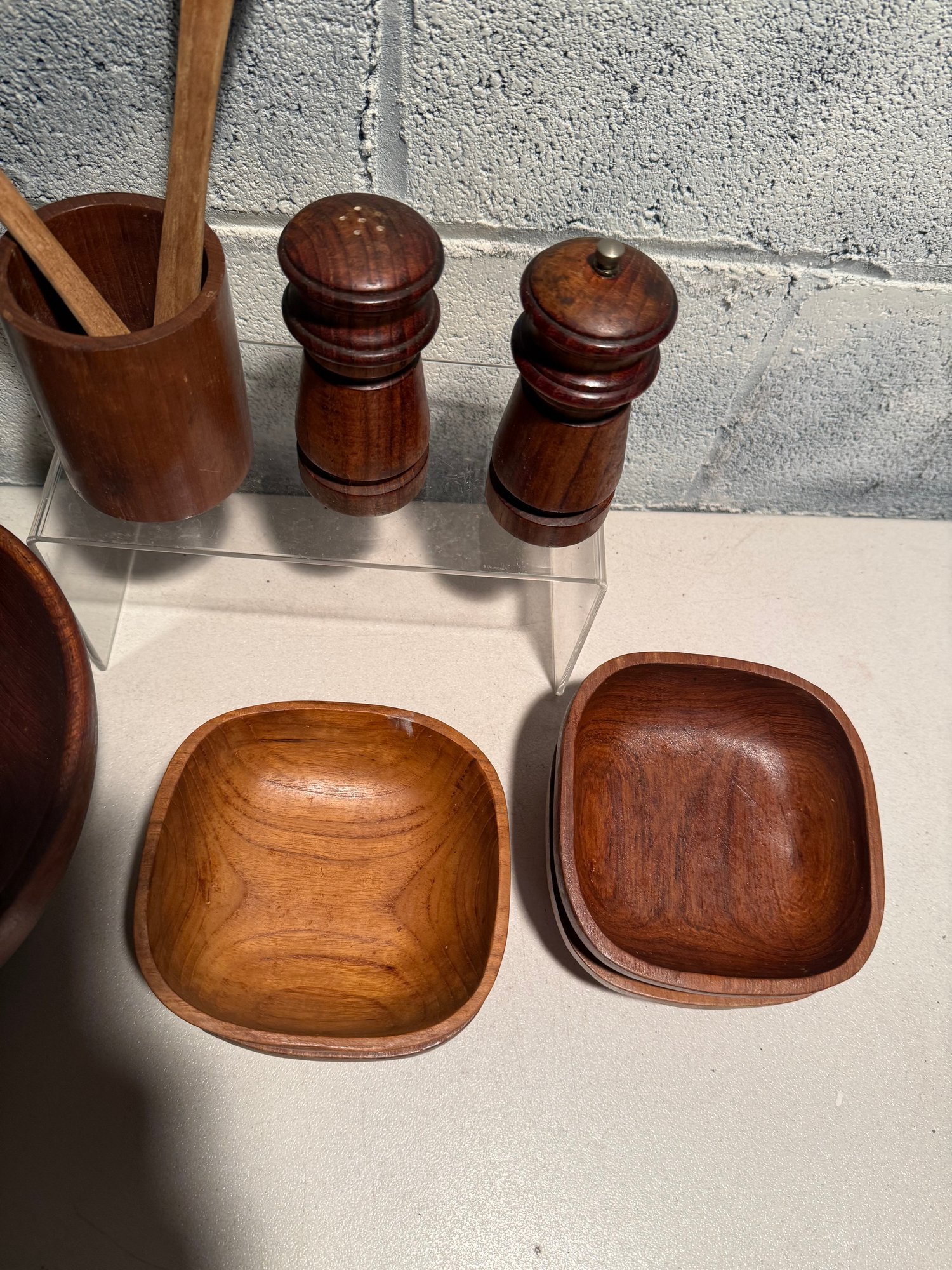 Mid-century Modern Wooden Kitchenware Set With Bowls, Utensils, And Grinders