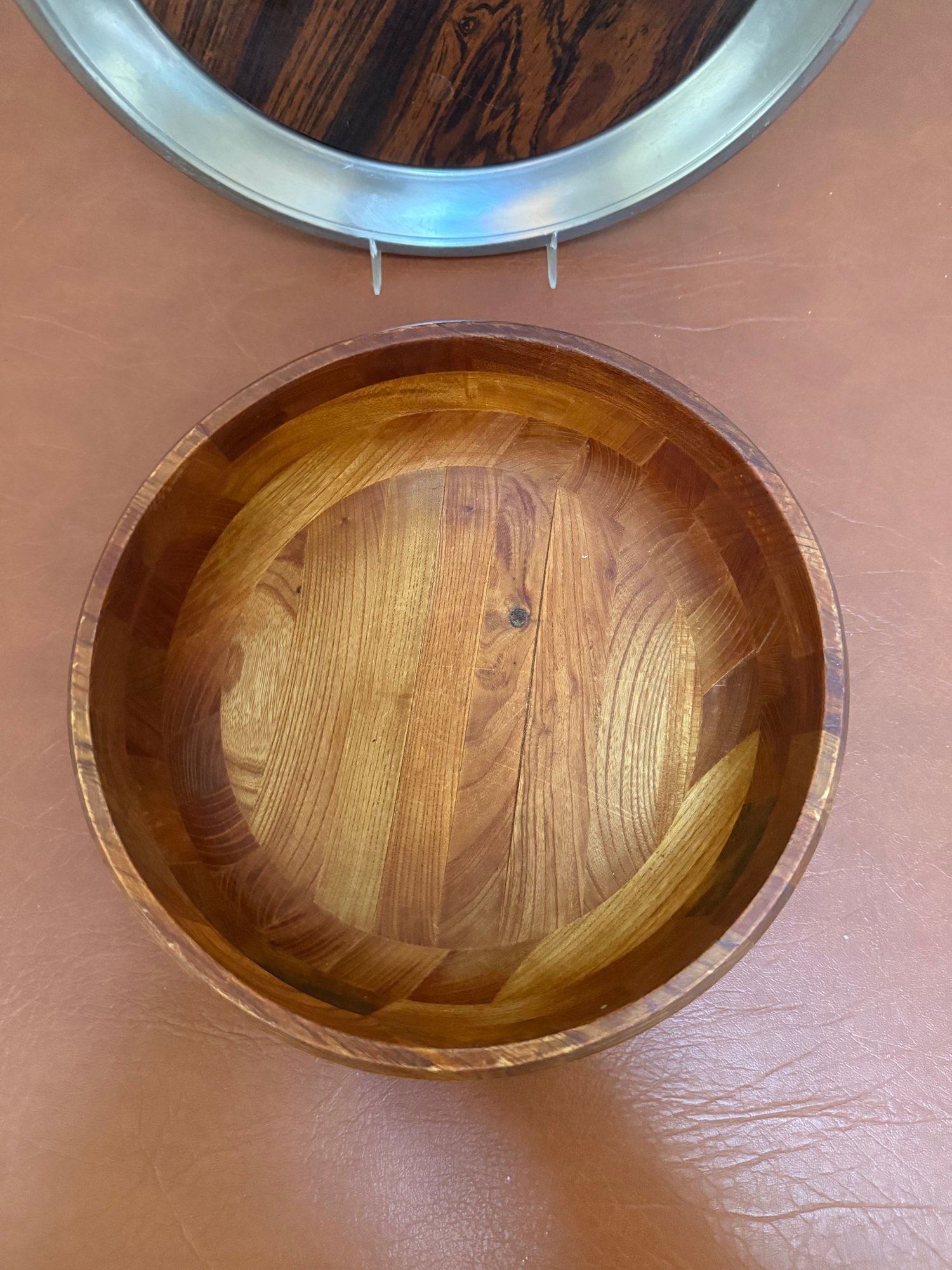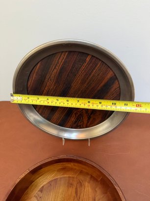 Mid-century Mosaic Wood Serving Bowl With A Metallic Rimmed Tray