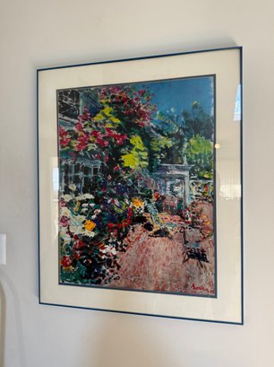 Impressionistic Garden Painting By Dimitrie Berea, Titled "Flower Terrace"