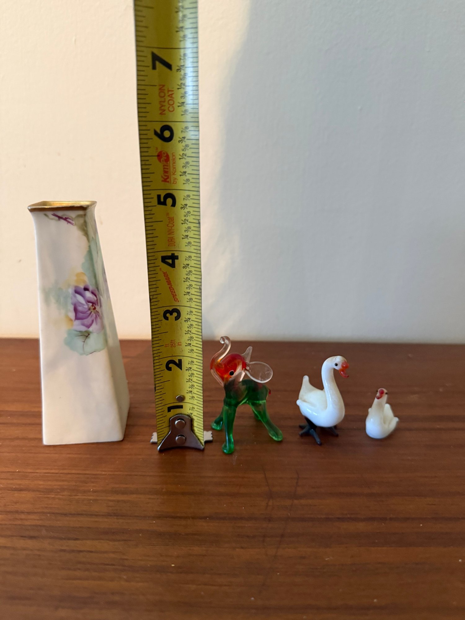 Murano Glass Miniature Swans/ Elephant And Firenze Italian Vase