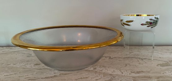 Gold Rim Serving Bowl And Royal Worcester Eveham Made In England Vegetable Bowl